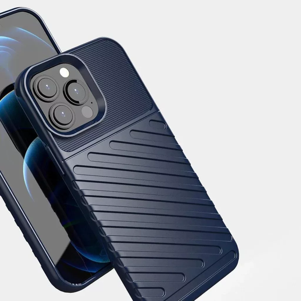 A termék és a csomagolás gyártói logó nélkül A Thunder Case a masszív telefontokok egy sorozata elegáns textúrával. A kiváló minőségű TPU anyagnak és a belső ütéselnyelő mintázatnak köszönhetően a tok kiváló védelmet nyújt leesések, ütések, karcolások, horpadások és rázkódások ellen.