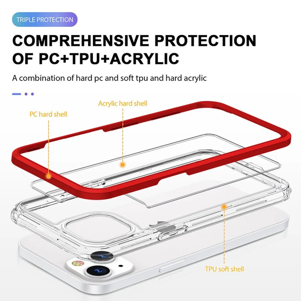 Hybrid anyaghasználat, mely TPU belső keretrészből, PC külső keretrészből és Akril hátlapi részből áll Hatékonyan ellenáll a minden napos igénybevételnek 1 és 1.1mm megemelt kamera és kijelző körüli keretrésszel Hátlapja átlátszó így nem takarja el a telefon eredeti színét Akril anyaghasználata ellenáll a zsíros szennyeződéseknek, elsárgulásnak és szivárványosodásnak Precíz illeszkedés és kivágások, jól fedett gombok Csúszásmentes kialakítás, jó tapadást nyújt kézben tartva