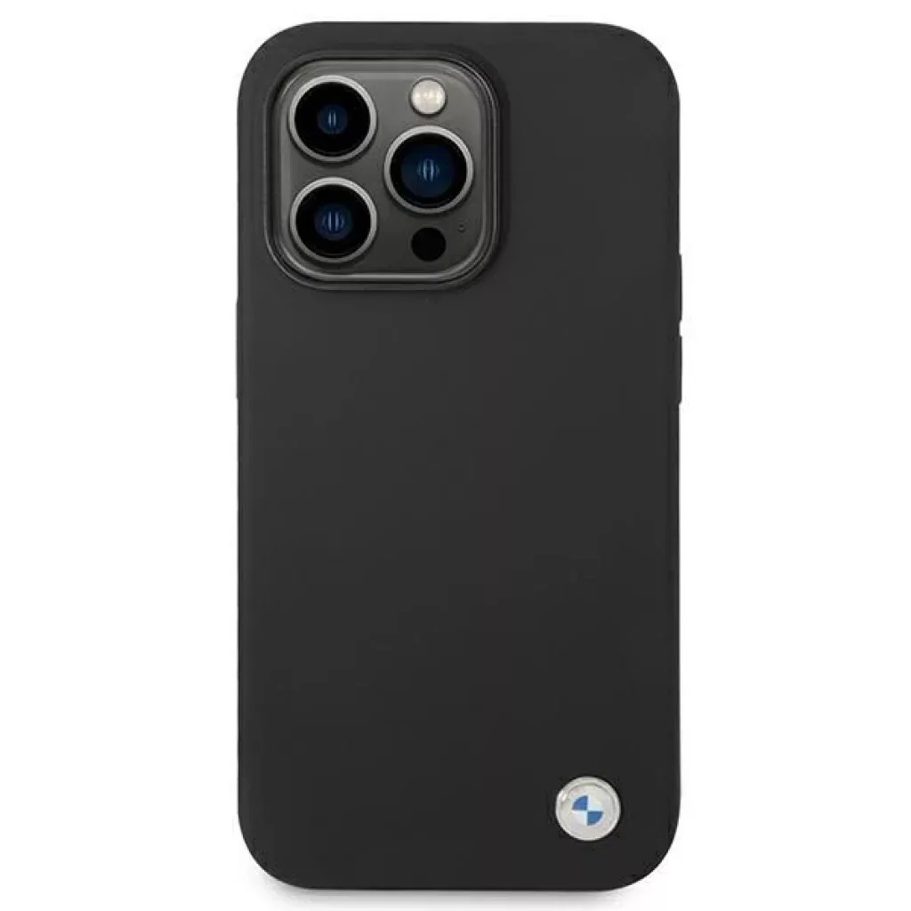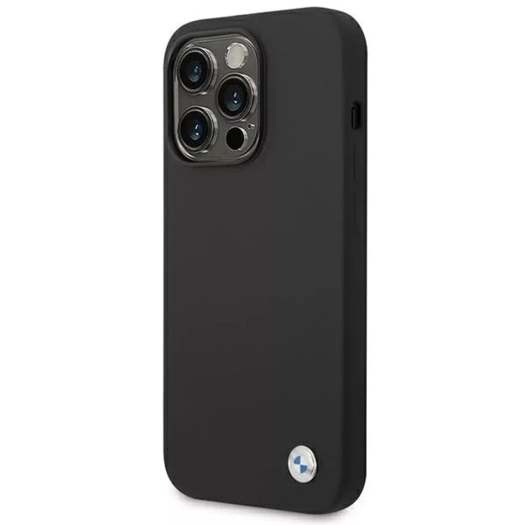 iPhone 14 Pro Max 6,7" fekete szilikon fém logó ETUI BMW BMHCP14XSILBK tok