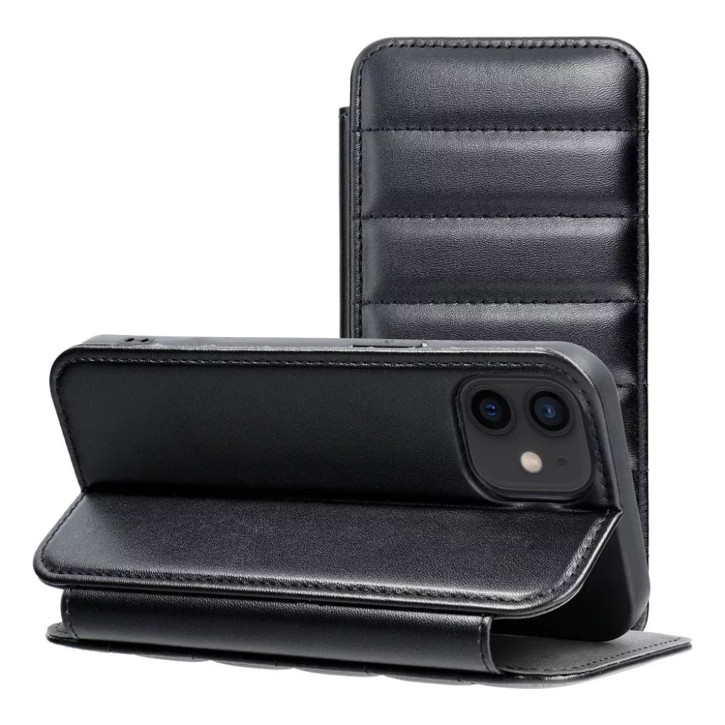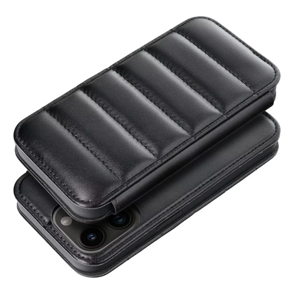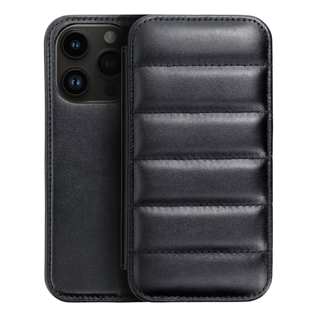 A Puffer Book tok tökéletesen kiegészíti a téli stilizációt, mivel megjelenése egy vastag, steppelt tollkabátra emlékeztet . Kellemes tapintású, ugyanakkor strapabíró anyagból készült, minden oldalról hatékony védelmet nyújt a készüléknek. A fedél kinyitása után látható két belső zseb lehetővé teszi a kártyák és bankjegyek biztonságos tárolását. A tok kényelmes állvány, amely megkönnyíti a filmnézést.