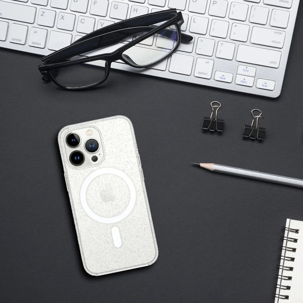 iPhone 15 Pro Max TEL PROTECT MagSilicone átlátszó csillogós tok Emeld ki iPhone 15 Pro Max készüléked ragyogását és biztosítsd számára a kompromisszumok nélküli védelmet a TEL PROTECT MagSilicone átlátszó csillogós tokkal! Ez a prémium kiegészítő harmonikusan ötvözi a lenyűgöző esztétikát a funkcionalitással, hogy készüléked ne csak biztonságban, de stílusosan is tündököljön. A tok lelke a beépített, nagy erejű MagSafe technológia, mely nem csupán a villámgyors és gondtalan vezeték nélküli töltést teszi lehetővé, de biztosítja a MagSafe kompatibilis tartozékok (például pénztárcák, autós tartók vagy külső akkumulátorok) stabil és tökéletes illeszkedését is. Felejtsd el a rosszul illeszkedő töltőket és a leeső kiegészítőket – a beépített mágnesei egyszerűbbé teszik a vezeték nélküli töltést és a tartozékok rögzítését. A TEL PROTECT tok egy innovatív hibrid anyagösszetételből készült, mely a strapabíró polikarbonát (PC) és egyéb rugalmasságot fokozó anyagok optimális elegye. Ennek köszönhetően kellő védelmet nyújt a mechanikai sérülésekkel szemben, kiválóan ellenáll a mindennapi karcolásoknak, ütődéseknek és a kisebb ejtések okozta sérüléseknek, így gondtalanul élvezheted készüléked minden pillanatát. Az átlátszó, csillogós design engedi érvényesülni iPhone 15 Pro Max készüléked eredeti szépségét és színét, míg a finom csillogás egyedi, elegáns és ragyogó külsőt kölcsönöz. A precíz gyártásnak hála a tok tökéletesen illeszkedik a készülékre, minden gomb, port és a kamera kivágásai milliméter pontosan illeszkednek, biztosítva a zavartalan hozzáférést és a kényelmes használatot. Válaszd a TEL PROTECT MagSilicone átlátszó csillogós tokot, és élvezd a prémium védelmet, a lenyűgöző stílust és a MagSafe nyújtotta páratlan kényelmet egyetlen elegáns és funkcionális csomagban!