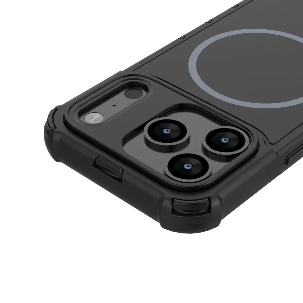 Specifikáció - Illik a: iPhone 17 Pro Max - Márka: TFO - Szín: fekete - Vastagság: 1,80 mm - Anyag: PCTPU (hőre lágyuló poliuretán) - Kompatibilis a MagSafe-fel: igen - Mágneses Erő: 1800 Gs - A csomagolás típusa: táska - Szavatosság: 12 hónap - Funkciók: telefonvédelem, nagy kivágás a kamerának Termékleírás Frame Thin Mag cover - praktikus védelem, amely kompatibilis a MagSafe technológiával. Masszív konstrukció két anyagból: A TPU és polikarbonát (PC) kombinációja 1,8 mm vastagságú szilárd borítást hoz létre. A belső réteg a sokk elnyeléséért felelős, míg a külső réteg a mechanikai sérülésekkel szemben véd. Ez a kialakítás jól működik, amikor a telefon leejtésnek, karcolásnak vagy nyomásnak van kitéve. MagSafe mágnes 1800 Gs erősséggel: A beépített mágneses gyűrű 1800 Gs erősséggel közvetlenül működik a MagSafe technológiával. A tartozékok biztonságosan és késedelem nélkül csatlakoznak, legyen szó töltőről, autós tartóról vagy külső akkumulátorról. Ez a megoldás megtartja a teljes vezeték nélküli töltési funkcionalitást anélkül, hogy eltávolítaná a borítást. Fokozott sarkvédő: Megerősített élek és vastagított sarkok elnyelik a becsapódási erőt esések esetén. A profil robusztus jellege mellett megőrzi az ergonómiát és a kényelmes tapintást. A borítás jól illeszkedik a kézbe, felülete nem csúszik meg, és nem gyűjti a ujjlenyomatokat. Nagy kivágás a kamerához: A hátoldalon található kameramodul kivágása megnövelt méretű, biztosítva ezzel, hogy ne akadályozza a lencsék működését és ne befolyásolja a fénykép minőségét. A kivágás körüli élek enyhén megemelkedtek, így védik a lencséket, amikor a telefon sík felületen fekszik. Hozzáférés minden funkcióhoz: A borítás nem zavarja a gombok vagy portok működését. A gombok simán működnek, és minden csatlakozó és hangszóró teljesen hozzáférhető. A matt textúra és a precíz illeszkedés összhangot teremt.