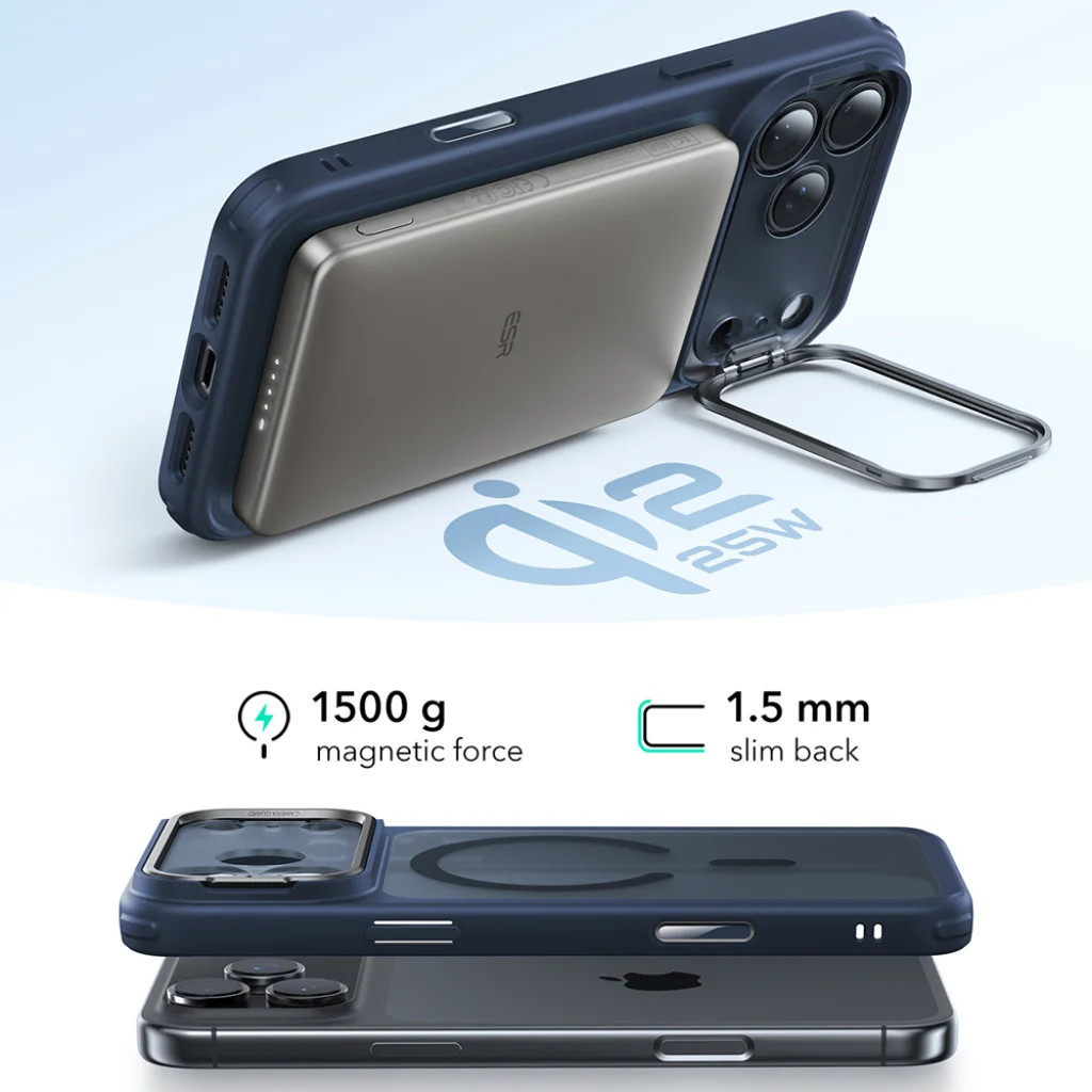 iPhone 17 Pro Max ESR Classic Hybrid HaloLock Kitámasztható tok - Matt Kék Elegancia és maximális védelem találkozik az iPhone 17 Pro Max ESR Classic Hybrid HaloLock kitámasztható tokban, amely lenyűgöző matt kék színben kapható. Ez a prémium kategóriás tok nem csupán stílusos kiegészítője telefonjának, hanem egy átfogó védelmi megoldás is, amely a legmodernebb technológiákat ötvözi a mindennapi kényelemmel és funkcionalitással. Főbb jellemzők: Verhetetlen ütésállóság és katonai védelem: A tok 11 láb (kb. 3,3 méter) magasságból történő leejtés elleni védelmet biztosít, amit a szigorú MIL-STD-810H 516.8 szabvány szerinti 3X katonai minőségű tanúsítvány is alátámaszt. Az ütéscsillapító Air Guard sarkok maximális védelmet nyújtanak a váratlan esésekkel szemben, elnyerve a rangos FRENCH DESIGN AWARD 2024 GOLD AWARD díjat is. Innovatív dupla rétegű kamera védelem: Egy teljes lefedettségű kamera sáv és egy tartós cinkötvözetből készült kamera védő keret gondoskodik a lencsék biztonságáról. A megemelt, 2,4 mm-es kamerasáv extra védelmet nyújt a karcolások és ütések ellen, míg a beépített kamera vezérlő fedél gomb további kényelmet biztosít. Erőteljes MagSafe kompatibilitás (HaloLock™): Az ESR saját fejlesztésű HaloLock™ rendszere tökéletes kompatibilitást biztosít a MagSafe tartozékokkal. Az 1500 grammos mágneses erő garantálja a stabil és biztonságos rögzítést, akár töltésről (támogatja az iQ2 25W-os vezeték nélküli töltést), akár egyéb MagSafe kiegészítők használatáról van szó. Praktikus és diszkrét Stash Stand kitámasztó: Az integrált és rendkívül stabil kitámasztó lehetővé teszi a telefon kényelmes, szabadkezes használatát fekvő és álló módban egyaránt. Videónézéstől a videóhívásokig, a kitámasztó mindig kéznél van, és elegánsan visszahajtható, szinte láthatatlan, amikor nincs rá szükség. Karcsú és elegáns design: Mindössze 1,5 mm vastagságával a tok megőrzi az iPhone 17 Pro Max eredeti karcsúságát. A modern matt kék hátlap és az átlátszó design kiemeli a telefon szépségét, miközben ellenáll az ujjlenyomatoknak és a sárgulásnak. Teljes körű képernyő védelem: A 1,2 mm-rel megemelt képernyő szél további védelmet nyújt a kijelzőnek, megelőzve a karcolásokat, amikor a telefont arccal lefelé helyezik, vagy esés esetén. Válassza az ESR Classic Hybrid HaloLock Kitámasztható tokot matt kék színben, és biztosítsa iPhone 17 Pro Max készülékének azt a védelmet, stílust és funkcionalitást, amit megérdemel!