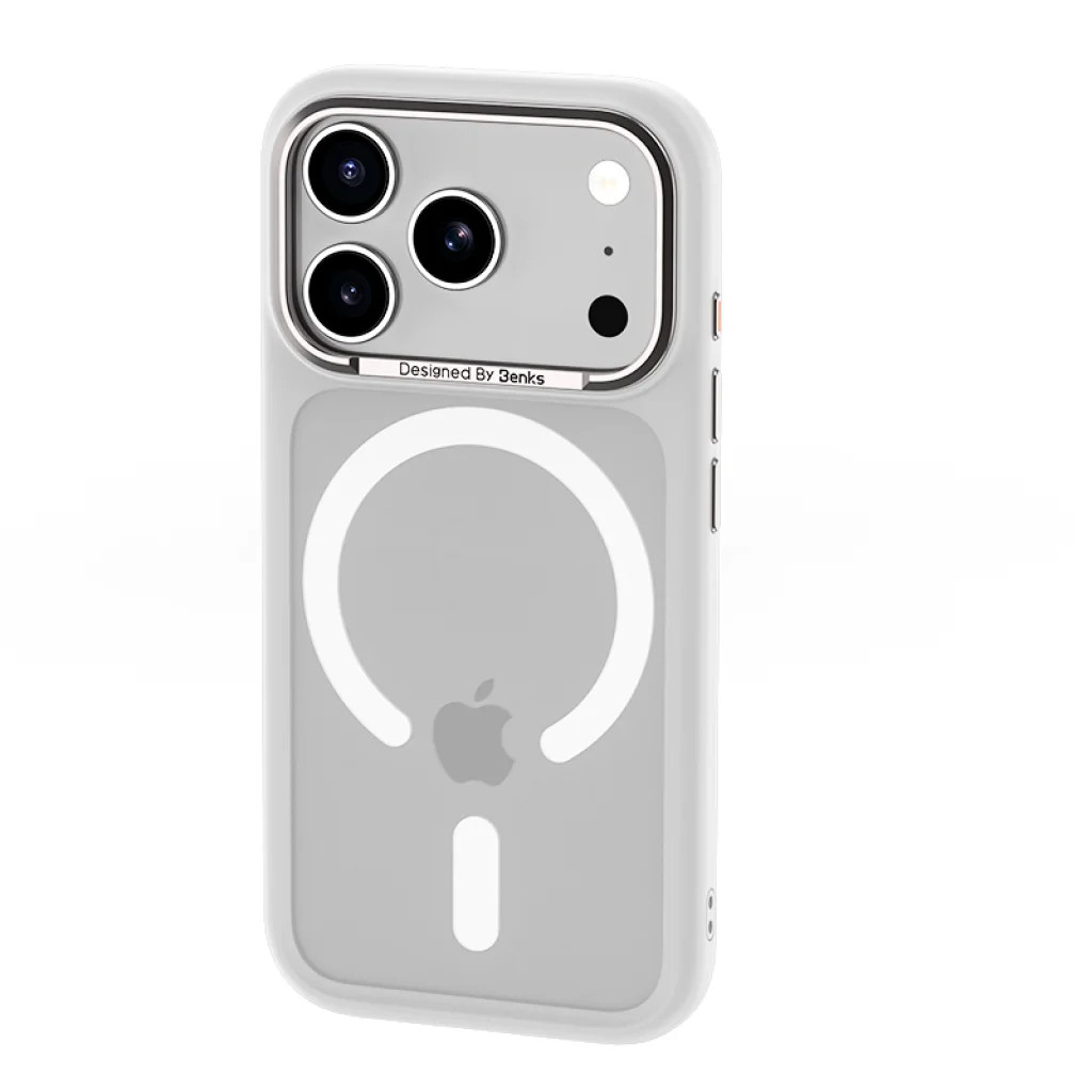 Benks Magnetic Mist tok fém kerettel és kamera vezérlő gombbal (iPhone 17 Pro Max, fehér) Védje és emelje ki iPhone 17 Pro Max készülékét a Benks Magnetic Mist tokkal, amely a stílus, a funkcionalitás és a prémium védelem tökéletes ötvözete. Az elegáns fehér színű, áttetsző hátlap finoman engedi átvilágítani telefonja eredeti dizájnját, miközben rendkívüli tartósságot biztosít. MagSafe kompatibilitás és prémium anyagok: A beépített mágneses gyűrűnek köszönhetően a tok teljesen MagSafe kompatibilis, így könnyedén csatlakoztathatja kedvenc MagSafe kiegészítőit és élvezheti a hatékony vezeték nélküli töltést. A kiváló minőségű anyagokból készült, tartós Benks tok garantálja a hosszú élettartamot, miközben megőrzi a készülék vékony profilját. Kiemelkedő védelem fém kerettel: A tok egyik legkiemelkedőbb eleme a kameramodul körül elhelyezkedő robusztus fém keret. Ez a precíziósan illeszkedő, ezüstös fényű keret nemcsak elegáns megjelenést kölcsönöz, hanem páratlan védelmet nyújt a kameráknak az ütések és karcolások ellen. Az áttetsző "Mist" (ködös) hatású hátlap kellemes tapintást biztosít, és ellenáll az ujjlenyomatoknak, valamint a mindennapi karcolásoknak, megőrizve a tok újszerűségét. Innovatív kamera vezérlő gomb: Tapasztalja meg az új szintre emelt felhasználói élményt a tok oldalán található dedikált kamera vezérlő gombbal. Ez az innovatív funkció lehetővé teszi, hogy még kényelmesebben és gyorsabban készítsen fényképeket, pillanatok alatt rögzítve a fontos emlékeket. Minden kivágás, a portoktól a hangszórókig, precízen illeszkedik, a gombok pedig érzékenyen reagálnak a könnyed használat érdekében. Főbb jellemzők: MagSafe kompatibilitás: Gondtalan csatlakoztatás és vezeték nélküli töltés a beépített mágneseknek köszönhetően. Robusztus fém kamera keret: Kiemelt védelem a lencséknek és elegáns, prémium megjelenés. Áttetsző "Mist" hátlap: Megőrzi a telefon eredeti szépségét, ujjlenyomat- és karcálló felülettel, kellemes tapintással. Dedikált kamera vezérlő gomb: Gyorsabb és kényelmesebb fotózási élmény egyetlen gombnyomással. Ejtésálló és karcálló védelem: Megvédi készülékét a mindennapi sérülésektől és esésektől. Precíziós illeszkedés: Tökéletesen körbeöleli az iPhone 17 Pro Max készüléket, minden port és gomb könnyen hozzáférhető. Prémium Benks minőség: Hosszú távú megbízhatóság és kifinomult design a Benks-től megszokott magas színvonalon. Válassza a Benks Magnetic Mist tokot, ha olyan védelmet keres, amely nem csupán megóvja iPhone 17 Pro Max készülékét, hanem stílusát és funkcionalitását is kiemeli!