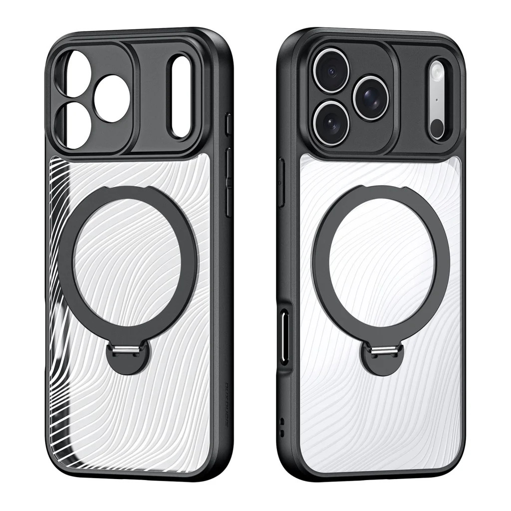 A Dux Ducis Aimo Mag tok mindent egyben kínál – védelmet, funkcionalitást és eleganciát azoknak, akik nem csak a biztonságot, hanem a mindennapi használat kényelmét is értékelik. A beépített mágneses gyűrű lehetővé teszi a mágneses kiegészítők és az induktív töltés kényelmes használatát. Ezen kívül a gyűrű praktikus állványként is funkcionál, amelyet függőlegesen vagy vízszintesen is kihajthatsz. A vékony és modern kialakítás kiemeli telefonod stílusát, miközben maximális védelmet nyújt az esés, karcolások és szennyeződések ellen. A kiváló minőségű anyagok garantálják a tartósságot, a pontos kivágások pedig kényelmes használatot biztosítanak a portok és a gombok számára. Ez több, mint egy egyszerű tok – elengedhetetlen bárkinek, aki azt akarja, hogy telefonja mindig biztonságban és használatra kész legyen! Specifikáció: - Márka: Dux Ducis - Modell: Dux Ducis Aimo Mag - Kompatibilitás: iPhone 17 Pro Max - További jellemzők: mágneses gyűrű állványfunkcióval, kompatibilitás mágneses kiegészítőkkel - Anyag: TPU, PC - Szín: fekete A Dux Ducis Aimo Mag tok legfontosabb előnyei: - Mágneses gyűrű állvánnyal: Lehetővé teszi a mágneses kiegészítők használatát és állványként is funkcionál a tartalom megtekintéséhez. - Megerősített védelem: A szilárd konstrukció hatékonyan védi a készüléket az esések, ütődések és karcolások ellen. - Vékony és stílusos kialakítás: A karcsú, vékony dizájn javítja a készülék megjelenését, anélkül, hogy fölösleges terjedelmet adna hozzá. - Precíz kivágások: A portok és gombok tökéletes elérhetősége lehetővé teszi a telefon teljes funkcionalitását. - Csúszásmentes felület: Biztos fogást nyújt, csökkenti annak kockázatát, hogy véletlenül elejtsd a telefonod. Mágneses gyűrű állvánnyal: A beépített mágneses gyűrű stabil kapcsolatot biztosít a mágneses kiegészítőkkel, egyidejűleg kényelmes állványként szolgál, amelyet függőlegesen vagy vízszintesen is beállíthatsz. Megerősített védelem a maximális biztonságért: A tok tartós TPU és PC kombinációból készült, ami hatékonyan csillapítja az ütéseket, és minimalizálja a telefon károsodásának kockázatát egy esetleges esés során. Vékony kialakítás kompromisszumok nélkül: A tok vékony dizájnja nem növeli a készülék terjedelmét, miközben teljes védelmet és esztétikai megjelenést biztosít. Precíz kivágások a teljes funkcionalitásért: A telefonod tökéletes illeszkedése biztosítja, hogy minden port és gomb teljes mértékben elérhető és könnyen használható maradjon. Csúszásmentes felület a biztos fogásért: A tok speciális bevonata megakadályozza, hogy a telefon kicsússzon a kezedből, ami jelentősen növeli a használat kényelmét és a készülék biztonságát.