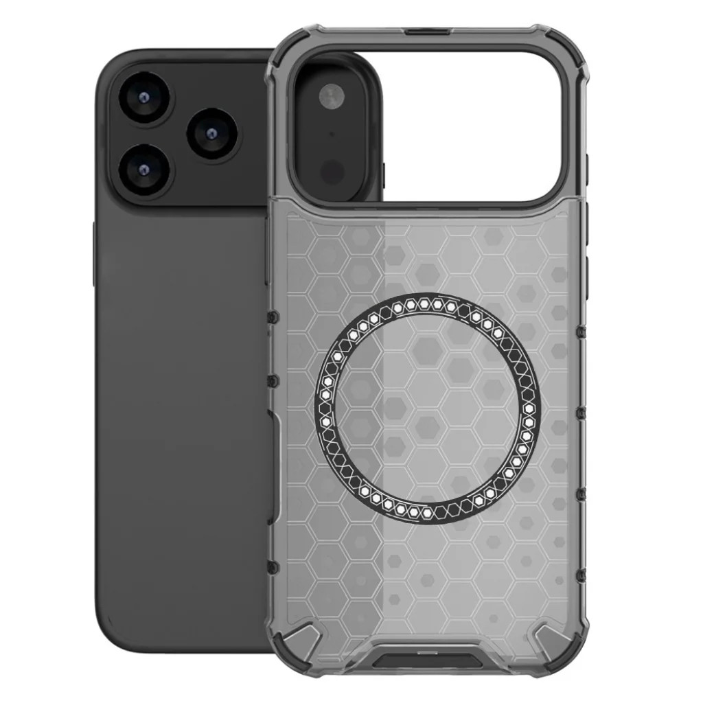 Az iphone 17 pro max techsuit honeycomb shield magsafe tok Bemutatjuk az iPhone 17 Pro Max készülékhez tervezett Techsuit HoneyComb Shield MagSafe tokot, amely a maximális védelem és a modern design tökéletes ötvözete. Ez a fekete kerettel és áttetsző, méhsejt mintás (Honeycomb Shield) hátlappal rendelkező tok nem csupán stílusos megjelenést kölcsönöz készülékének, hanem prémium védelmet és páratlan funkcionalitást is kínál a mindennapokra. Páratlan védelem a mindennapokra Négy sarkú légzsák védelem: A tok minden sarkában beépített, puha légzsákok (Four-corner airbags) találhatóak, amelyek hatékonyan nyelik el az ütéseket és rázkódásokat esés esetén. Így garantálva, hogy telefonja biztonságban maradjon a váratlan balesetek során, félelem nélkül a leejtéstől. Kamera- és képernyővédelem: A megemelt élek mind a kamera modul, mind a kijelző körül extra védelmet biztosítanak a karcolások és közvetlen ütések ellen, amikor a telefont sík felületre helyezi. Tartós anyaghasználat: Minőségi anyagokból készült, amelyek hosszú távon megőrzik a tok esztétikai és védelmi tulajdonságait. Integrált magsafe technológia Erős mágneses gyűrű: A tok hátlapjába épített mágneses gyűrű (Magnetic attracting ring) rendkívül erős és stabil MagSafe kapcsolódást biztosít. Ez garantálja, hogy a MagSafe kompatibilis tartozékok, mint például a vezeték nélküli töltők, adapterek vagy kártyatartók, szilárdan tapadjanak a tokhoz, és ne essenek le még séta közben sem (Adsorbs firmly and won't fall off when walking). Zökkenőmentes töltés: Támogatja a gyors és hatékony vezeték nélküli MagSafe töltést, anélkül, hogy a tokot el kellene távolítania. Innovatív design és precíz illeszkedés Áttetsző méhsejt design: A tok áttetsző hátlapja elegáns méhsejt mintával van ellátva, amely modern és futurisztikus megjelenést kölcsönöz, miközben megőrzi az iPhone eredeti szépségét. A fekete keret letisztult kontrasztot ad. Tökéletes illeszkedés: A "valódi gép öntési" technológiának (Real machine mold opening, perfect fit) köszönhetően a tok tökéletesen illeszkedik az iPhone 17 Pro Max készülékhez. Minden kivágás, port és gomb precízen a helyén van, biztosítva a zavartalan hozzáférést a telefon funkcióihoz.