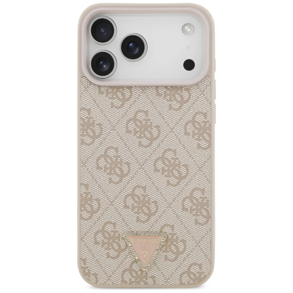 iPhone 17 Pro Max Guess bőr 4G Triangle Strass MagSafe tok rózsaszín tok