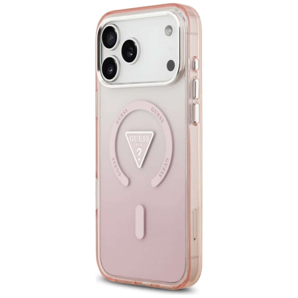 A Guess IML Színátmenetes Háromszög Logó MagSafe tok exkluzív sorozat, amely kiváló funkcionalitást egyesít egyedi, stílusos dizájnnal. Ez a kollekció azok számára készült, akik nemcsak a telefon biztonságára, hanem az elegáns megjelenésre is hangsúlyt fektetnek. Kivételes megjelenés és kivételes minőség jellemzi az exkluzív védőtokokat a neves Guess márkától. A tok kiváló minőségű PC és TPU anyagból készült, és a felület IML Színátmenet technológiával lett befejezve, amely modern karaktert kölcsönöz neki. A középső rész Guess logóval van díszítve, amely elektroszálas eljárással készült, a kollekció presztízsét hangsúlyozva. További előny az alumíniumból készült gombok és a kamera kerete, amelyek biztosítják a tartósságot és az elegáns megjelenést. Ez a tökéletes kombinációja a funkcionalitásnak és az elegáns dizájnnak, így a telefonja nemcsak jól védett, hanem divatos kiegészítő is. Robusztus kialakítás és tökéletes illeszkedés jellemzi. Gondosan beállított méretei révén a tok hatékonyan tompítja az ütéseket, miközben teljes hozzáférést biztosít a portokhoz és a gombokhoz. A tok oldalai rugalmasak, így könnyen telepíthetők és eltávolíthatók, miközben tökéletesen védik a készülék keretét az ütésektől és karcolásoktól. Kissé megemelt szélei hatékonyan védik a telefon képernyőjét az esetleges sérülésektől, míg a magasított kamera keret megóvja a lencséket a repedésektől és karcolásoktól. Vezeték nélkül töltheti a telefonját! A tok mágneses gyűrűvel van felszerelve, amely kompatibilis a MagSafe vezeték nélküli töltővel, biztosítva a gyors és könnyű töltést. A beépített mágnesek tökéletesen igazodnak a felhasználó telefonjához, biztosítva az erős kapcsolatot a MagSafe töltővel. A tok Guess licensz alatt készül.