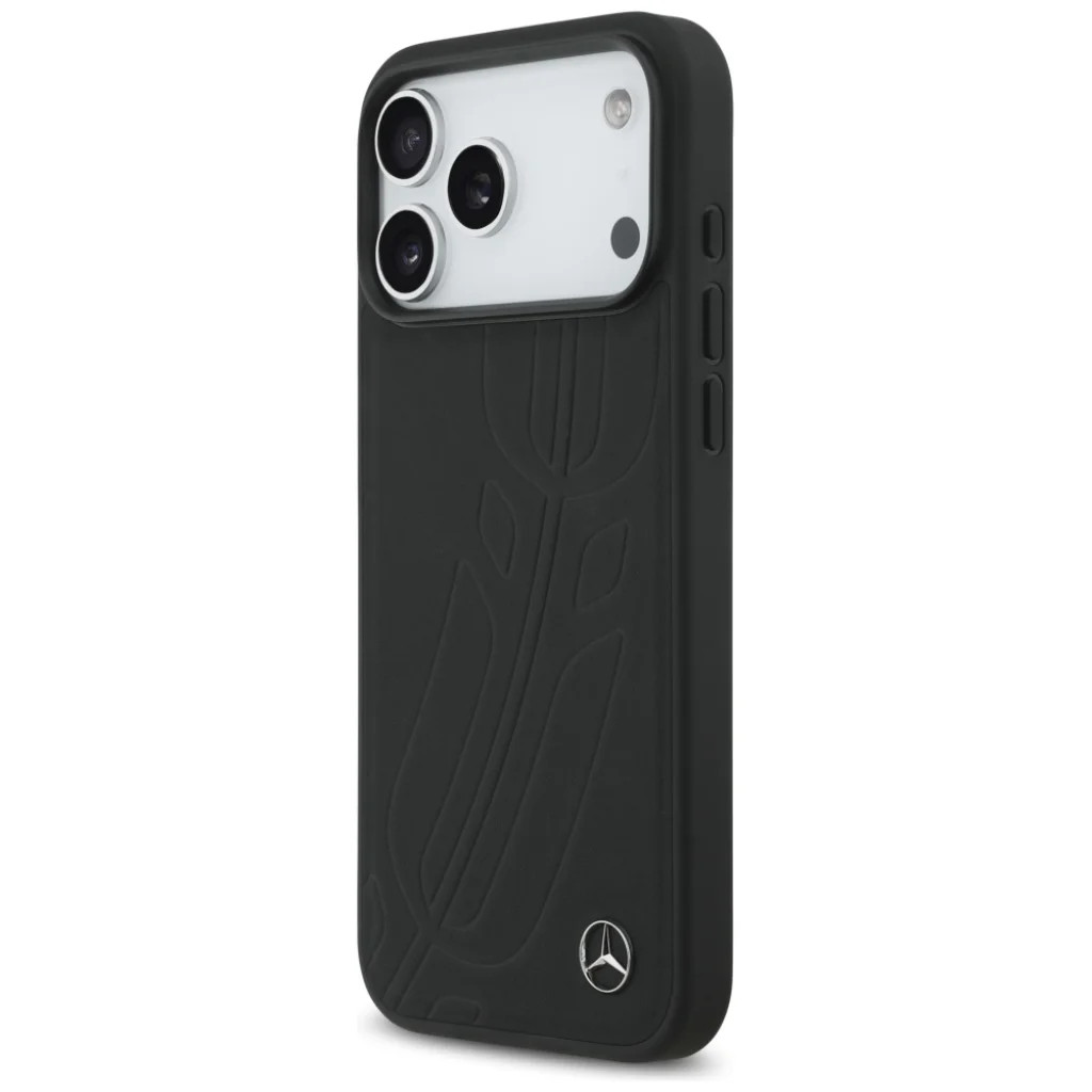 iPhone 17 Pro Max Mercedes bőrtok nagy babérlevél mintával MagSafe fekete tok