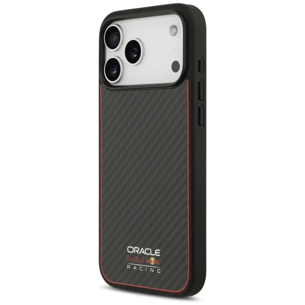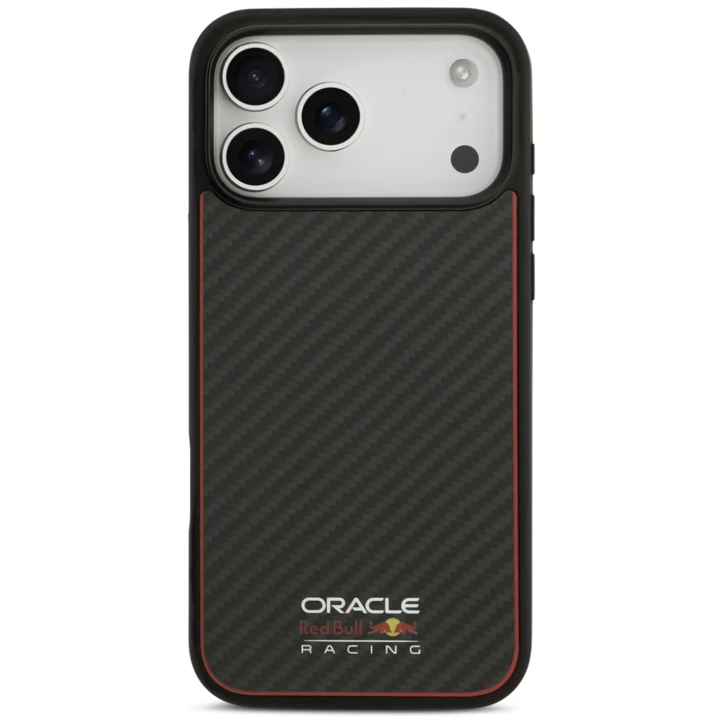 Red Bull Kevlar Logo Matt MagSafe exkluzív tok a Kevlar Logo Matt MagSafe kollekcióból egy kivételes minőségű védőtok, mely mögött a világ egyik legismertebb verseny- és mérnökcsapata áll. Tökéletes választás minden MagSafe technológiával rendelkező eszköz tulajdonos számára. Egyedi dizájn és kiváló minőség A Kevlar Logo Matt MagSafe tok tartós aramid szálból (Kevlar) készült, melyet kivételes tartósság és sportos megjelenés jellemez. A vékony kialakítás nem növeli a telefon méreteit, fenntartva annak elegáns megjelenését és könnyű használhatóságát. A tok dinamikus karakterét egy piros vonal az él mentén és egy fekete kamera keret és gombok hangsúlyozzák, melyek kiegészítik az összhangban lévő, modern dizájnt. Az egészet az ikonikus Oracle Red Bull Racing logó teszi teljessé, amely igazolja a termék hitelességét és magas minőségét. Masszív szerkezet és tökéletes illeszkedés A Kevlar Logo Matt MagSafe sorozatú tok hatékony védelmet nyújt ejtések ellen, miközben gyors és egyszerű telepítést kínál. Enyhén megemelt élek a képernyő és a kamera körül további védelmet nyújtanak a karcolások ellen. A dizájn teljesen kompatibilis a MagSafe rendszerrel és tartozékokkal. Töltse telefonját vezeték nélkül! A tok egy MagSafe vezeték nélküli töltővel kompatibilis mágneses gyűrűvel van felszerelve, amely gyors és egyszerű töltést biztosít. A tok beépített mágnesei tökéletesen illeszkednek a felhasználó telefonjához, és biztosítják az iPhone erős rögzítését a MagSafe töltőhöz. A tok a Red Bull márka licencével készült. Műszaki adatok Kollekció: Kevlar Logo Matt MagSafe Terméktípus: Védőtok Anyagok: Aramid szál (Kevlar) / TPU / PC Szín: Fekete Kompatibilitás: iPhone 17 Pro Max