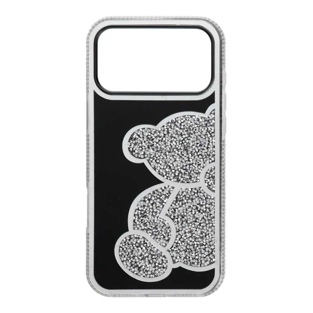 Fényűző teddy bear tok iPhone 17 Pro Max készülékéhez Emeld ki telefonod eleganciáját és biztosítsd számára a maximális védelmet ezzel a különleges, csillogó Teddy Bear tokkal! Az iPhone 17 Pro Max készülékhez tervezett, egyedi ezüst színű tok nem csupán egy védőburkolat, hanem egy divatos kiegészítő, amely magára vonzza a tekinteteket. Dizájn, ami magával ragad A tok legfőbb vonzereje a fekete alapon elhelyezkedő, csillogó ezüst mackó minta, melyet apró, fénylő kristályok borítanak. A mackó figurát elegáns, ezüst színű keret emeli ki, amely a kamera sziget körül is visszaköszön, egységes és prémium megjelenést biztosítva. Az átlátszó oldalsó élekbe szintén beépített apró, csillogó kövek tovább fokozzák a tok fényét és egyediségét, elegáns csillogást kölcsönözve minden mozdulatnál. A mackó karakterét a fekete, stilizált szemüveg teszi még különlegesebbé és játékosabbá. Fokozott védelem minden oldalon A stílus mellett a funkcionalitás is kiemelt szerepet kap. A tok kiváló minőségű PU (poliuretán) és rugalmas TPU (termoplasztikus poliuretán) anyagok kombinációjából készült, amelyek tartós és megbízható védelmet nyújtanak a mindennapi ütések, karcolások és leesések ellen. A pontosan illeszkedő kialakítás garantálja a gombok és portok könnyű hozzáférését, miközben megóvja azokat a szennyeződésektől. Kiemelt kamera védelem: A kamera sziget körül található megemelt ezüst keret megakadályozza a lencsék közvetlen érintkezését a felületekkel, így minimalizálva a karcolások kockázatát. Megemelt képernyő élek: A tok elülső része is enyhén megemelt, így ha a telefon kijelzővel lefelé fekszik, a képernyő nem érintkezik közvetlenül a felülettel, további védelmet nyújtva. Ütéselnyelő anyagok: A PU és TPU kombináció hatékonyan nyeli el az ütéseket, eloszlatva az energiát a telefon felületén, ezzel csökkentve a sérülés veszélyét. Tökéletes választás Ez a TEDDY BEAR tok ideális választás mindazok számára, akik egyedi és divatos megjelenésre vágynak, anélkül, hogy kompromisszumot kötnének a telefonjuk védelmének terén. Légy elegáns és ragyogó a mindennapokban, miközben készüléked biztonságban tudhatod!