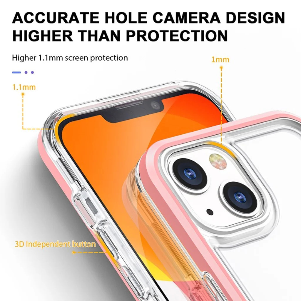 Hybrid anyaghasználat, mely TPU belső keretrészből, PC külső keretrészből és Akril hátlapi részből áll Hatékonyan ellenáll a minden napos igénybevételnek 1 és 1.1mm megemelt kamera és kijelző körüli keretrésszel Hátlapja átlátszó így nem takarja el a telefon eredeti színét Akril anyaghasználata ellenáll a zsíros szennyeződéseknek, elsárgulásnak és szivárványosodásnak Precíz illeszkedés és kivágások, jól fedett gombok Csúszásmentes kialakítás, jó tapadást nyújt kézben tartva