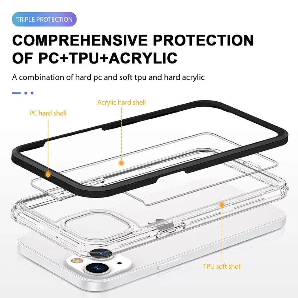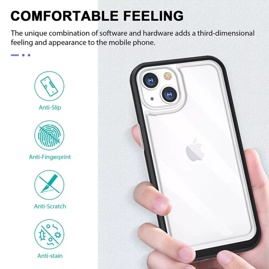 Hybrid anyaghasználat, mely TPU belső keretrészből, PC külső keretrészből és Akril hátlapi részből áll Hatékonyan ellenáll a minden napos igénybevételnek 1 és 1.1mm megemelt kamera és kijelző körüli keretrésszel Hátlapja átlátszó így nem takarja el a telefon eredeti színét Akril anyaghasználata ellenáll a zsíros szennyeződéseknek, elsárgulásnak és szivárványosodásnak Precíz illeszkedés és kivágások, jól fedett gombok Csúszásmentes kialakítás, jó tapadást nyújt kézben tartva