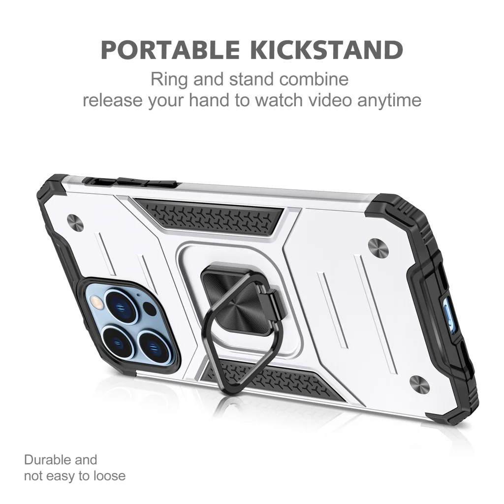 Fedezd fel az iphone 14 ring armor case kickstand tok tökéletes védelmét! Az Alphajack iPhone 14 Ring Armor Case Kickstand tokja egyedülálló kombinációja a robusztus védelemnek és a praktikus funkcionalitásnak. Ez az ezüst színű, innovatív kialakítású tok nemcsak megóvja készülékedet a mindennapi sérülésektől, hanem sokoldalú felhasználási lehetőségeket is biztosít. Főbb jellemzők: Hibrid, többrétegű kialakítás: A tok egy kemény PC (polikarbonát) héjból és egy puha TPU (termoplasztikus poliuretán) belső rétegből áll, kiegészítve egy fém konzollal. Ez a kombináció maximális ütésállóságot és tartósságot garantál, miközben elegáns megjelenést biztosít. Kiemelkedő ütésállóság és sarktámogatás: A sarkokon megerősített résszel és speciális légpárnás technológiával készült, amely hatékonyan elnyeli az ütéseket és leejtésekből származó energiát, megóvva telefonodat a sérülésektől. Fokozott kijelző- és kameravédelem: A tok megemelt (0.3mm) peremmel rendelkezik mind a kijelző, mind a kamera körül, így megakadályozza a közvetlen érintkezést a felületekkel, minimalizálva a karcolások és repedések kockázatát. Beépített, forgatható gyűrűs kitámasztó: A masszív, alumínium gyűrűs kitámasztó kényelmesen kihajtható, és 180° vagy akár 360°-ban is forgatható. Ez lehetővé teszi, hogy kéz nélkül nézz videókat, böngéssz vagy videótelefonálj, bármilyen szögből. Erős és tartós kialakításának köszönhetően hosszú távon is megbízhatóan működik. Mágneses autós tartó kompatibilitás: A gyűrűs tartóban található erős mágneses fémlemeznek köszönhetően a tok tökéletesen illeszkedik a mágneses autós telefontartókhoz, így telefonod stabilan rögzül az autóban, leejtésálló megoldást nyújtva. Precíz illeszkedés és kivágások: A tok tökéletesen illeszkedik az iPhone 14-re, minden port, gomb és csatlakozó szabadon hozzáférhető marad, anélkül, hogy levennéd a védelmet. Belső felület védelem: A tok belső felülete úgy lett kialakítva, hogy hatékonyan védjen a koszolódástól és a karcolásoktól, megőrizve telefonod hátlapjának eredeti állapotát. Minőségi konstrukció: A prémium anyaghasználat és a gondos tervezés révén a tok kiváló védelmet és stílusos megjelenést biztosít, miközben ellenáll a mindennapi használat során fellépő kopásnak.