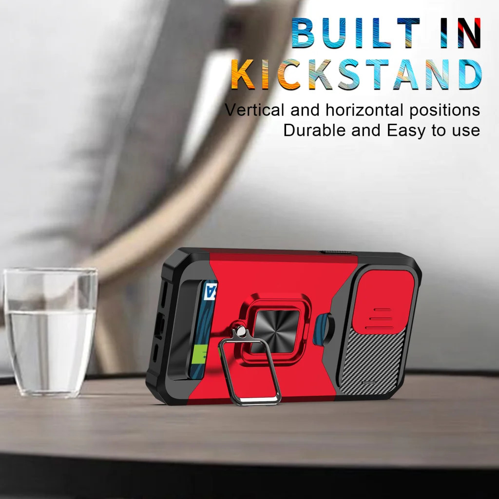 iPhone 14 Plus Ring Armor tok kameralencse védővel, kihajtható támasszal, kártyatartóval rózsaszín Alphajack