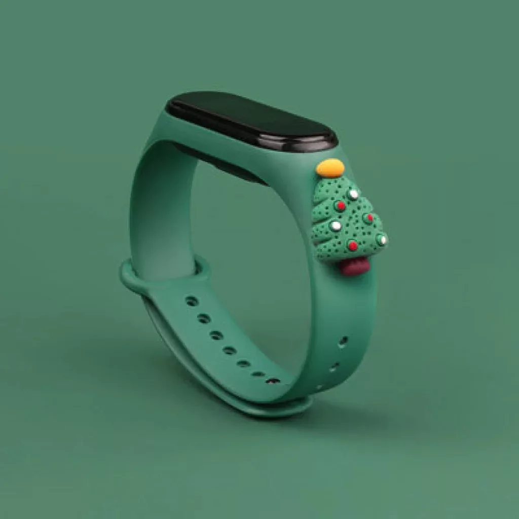 Strap Xmas karácsonyi óraszíj Xiaomi Mi Band 4 / Mi Band 3 sötétzöld fenyőfa