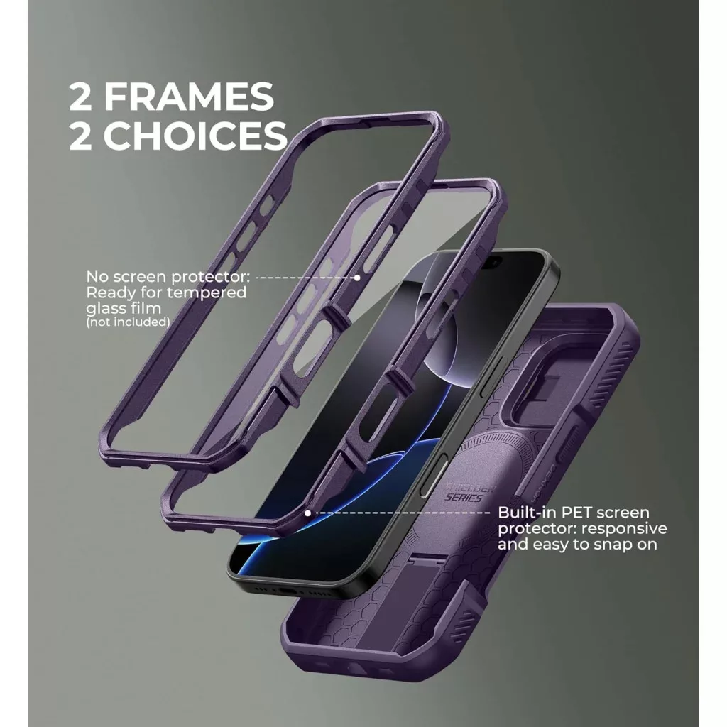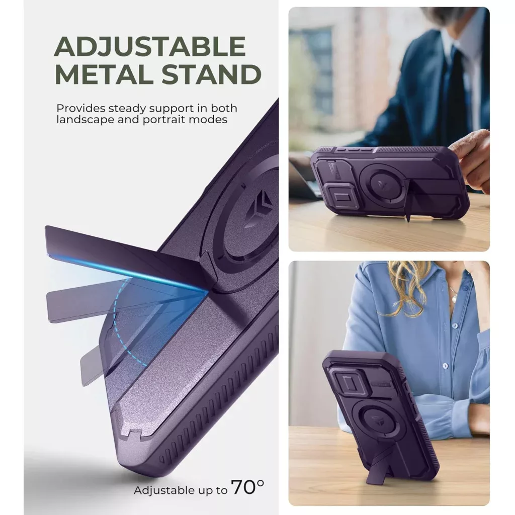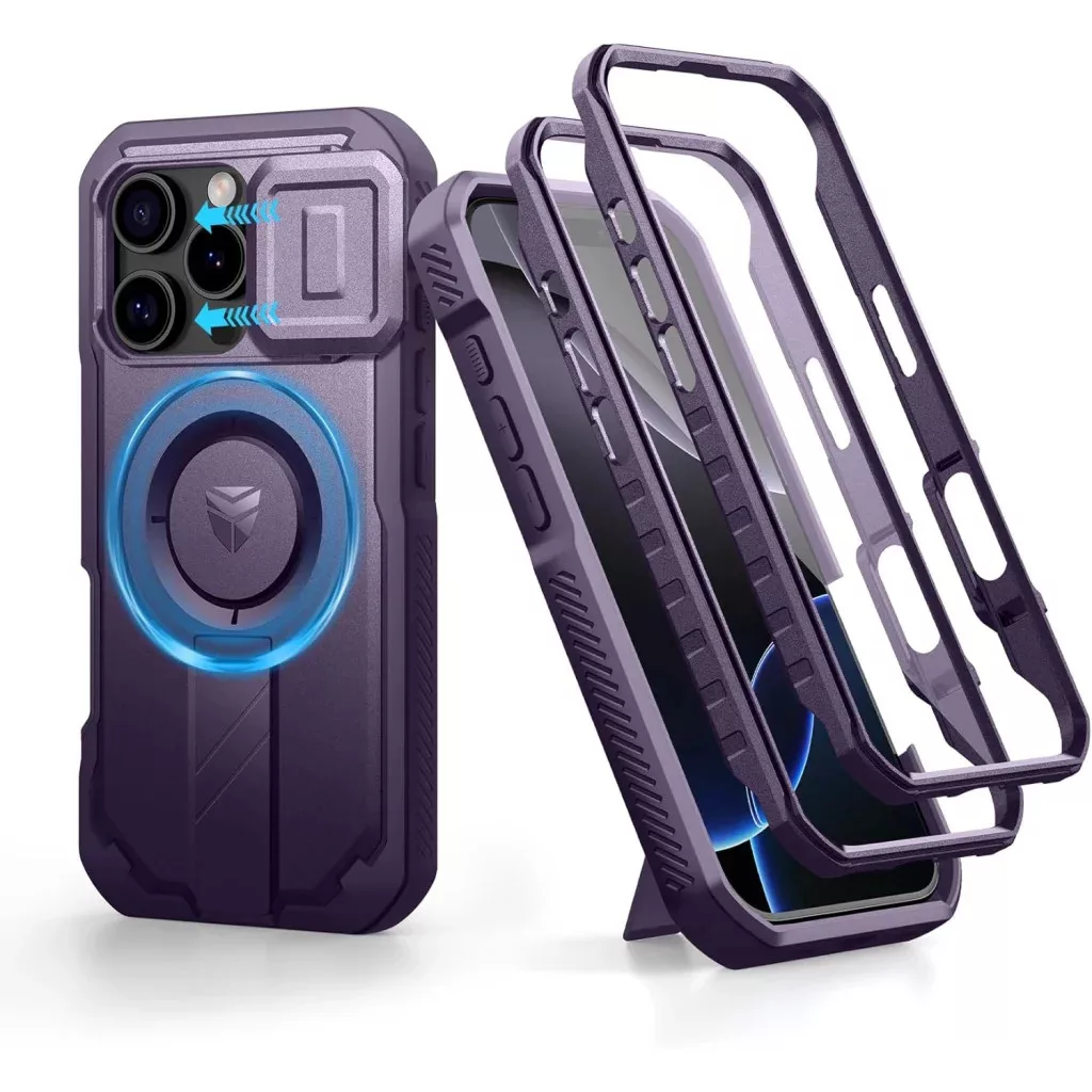 A Dexnor MagSafe tok iPhone 16 Pro készülékhez a kompromisszumok nélküli védelem és a modern funkcionalitás tökéletes ötvözete. Ez a lila, ütésálló tok nem csupán megvédi telefonját a mindennapi sérülésektől, hanem a MagSafe kompatibilitás és az innovatív kihajtható állvány révén új szintre emeli a felhasználói élményt. Készüljön fel minden kihívásra, legyen szó városi dzsungelről vagy vad természetről! A tökéletes védelem az iphone 16 pro-hoz Ez az ütésálló tok kifejezetten az iPhone 16 Pro (6.3 hüvelykes) modellhez készült, precíz kivágásokkal biztosítva az összes gomb és port zökkenőmentes hozzáférését. Kérjük, vásárlás előtt ellenőrizze telefonja pontos modelljét, mivel nem kompatibilis az iPhone 16 (6.1 hüvelykes) és az iPhone 16 Pro Max (6.9 hüvelykes) modellekkel. Verhetetlen magsafe erő Élvezze a MagSafe technológia minden előnyét a Dexnor tokkal! Az akár 1,400g-os mágneses tartóerőnek köszönhetően telefonja biztonságosan illeszkedik minden MagSafe tartozékhoz. Legyen szó vezeték nélküli töltőről, külső akkumulátorról vagy mágneses pénztárcáról, ez a robusztus tok garantálja, hogy készüléke stabilan és biztonságosan a helyén marad bármilyen helyzetben. Beépített fém állvány a maximális kényelemért A kiváló minőségű alumíniumötvözetből készült, állítható fém állvány hihetetlenül stabil és tartós. Biztonságosan tartja telefonját akár fekvő, akár álló módban, akár 70 fokos szögben állítható, így biztosítva a tökéletes kényelmet a kéz nélküli filmnézéshez, videóhívásokhoz vagy egyszerűen csak böngészéshez. Katonai szintű ütésállóság minden kalandhoz A Dexnor tokot úgy tervezték, hogy ellenálljon a legkeményebb kihívásoknak is. Ütéscsillapító TPU lökhárítókkal és robusztus PC hátlappal készült, amelyek együttesen védik telefonját a leejtésektől és ütődésektől, még a legnehezebb terepen is. A MIL STD 810H-516.8 minősítés garantálja a nyugalmat a szabadtéri kalandok során. Innovatív kettős előlapi keret opciók Ez az egyedülálló tok két különböző előlapi kerettel érkezik, hogy személyre szabott védelmet biztosítson: Az első keret egy előre telepített, érzékeny PET képernyővédő fóliával rendelkezik, amely védelmet nyújt a karcolások, por és fröccsenések ellen. Alternatívaként használhatja a második keretet, ha saját edzett üvegfóliával szeretné kiegészíteni a védelmet (az üvegfólia nem tartozék). Csúszó kameralencse védelem Védje iPhone 16 Pro kameráit a karcolásoktól és a portól az innovatív csúszó kameralencse borítással. Ez a finoman mozgó takaró könnyedén elcsúsztatható, amikor fényképezni szeretne, majd visszacsúsztatható, hogy teljes védelmet nyújtson a lencséknek, így biztosítva azok hosszú élettartamát és kristálytiszta képeit. A dexnor a kalandokhoz készült A Dexnor a szabadtéri élet szerelmeseinek készült. Ez a tok a tökéletes társ a robusztus felfedezésekhez. A hegycsúcsoktól a sivatagi homokig a Dexnor tokok rendkívül strapabíróak, hogy megbirkózzanak a természet által támasztott kihívásokkal. Bízzon a Dexnorban, és induljon magabiztosan a következő kalandjára!