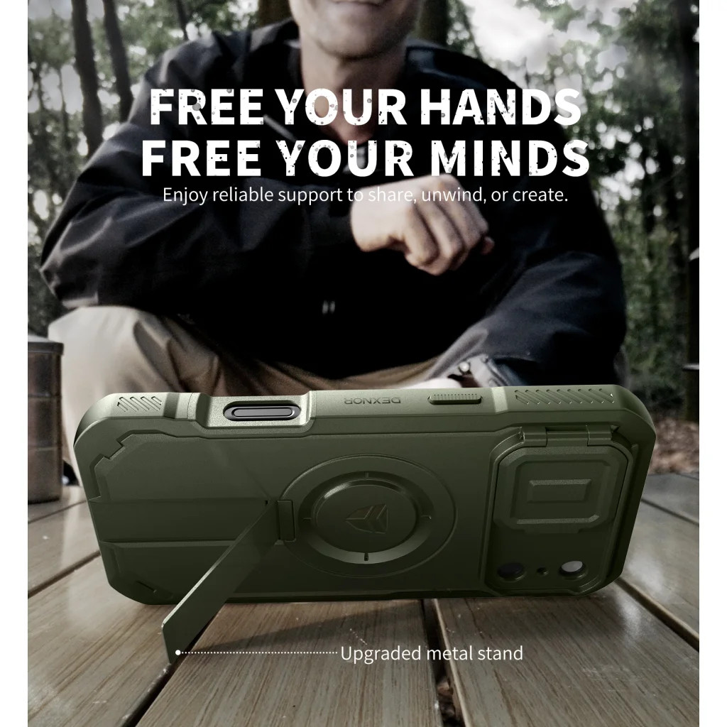 A tökéletes társ az iPhone 17 Pro Max számára Az iPhone 17 Pro Max Dexnor MagSafe ütésálló tok zöld színben a funkcionalitás és a páratlan védelem szinergiáját kínálja. Készen állsz arra, hogy telefonodat a legkeményebb kihívásoknak is ellenálló pajzzsal lásd el, miközben élvezheted a modern technológia minden előnyét, mint a MagSafe kompatibilitás és a kihajtható állvány. Elpusztíthatatlan MagSafe erő Tapasztald meg a MagSafe páratlan erejét a Dexnor tokkal! A beépített 1400G mágnesesség rendkívül stabil kapcsolatot biztosít minden MagSafe tartozékkal, legyen szó vezeték nélküli töltőről, autós tartóról, pénztárcáról vagy gyűrűtartóról. Egy mozdulattal felpattinthatod, töltheted, és útra kelhetsz anélkül, hogy a kábelekkel kellene bajlódnod. A tökéletes, megszakításmentes élményért, akár kirándulsz, akár a városban vagy. Kalandra fel a megbízható társaddal Vágj bele az ismeretlenbe bátran! Az iPhone 17 Pro Max Dexnor tok a te megbízható társad az élet minden kalandjában. Robusztus kialakításával és extra védelmi funkcióival biztos lehetsz benne, hogy telefonod biztonságban van, bárhová is sodorjon az élet. Teljes körű védelem határok nélkül Ez a tok nem csupán egy kiegészítő, hanem egy végső pajzs a természet legkeményebb kihívásai ellen. Katonai szintű ejtésvédelemmel készült, így telefonod ellenáll a mindennapi ütéseknek, eséseknek és karcolásoknak. A továbbfejlesztett, fixen záródó kameravédő elcsúsztatható mechanizmusa maximális biztonságot nyújt az iPhone 17 Pro Max lencséinek. Zárd le a kamerát, mielőtt belevágsz a következő nagy kalandba, és őrizd meg lencséid épségét a legmostohább körülmények között is. Szabad kezek, szabad elme Engedd szabadjára a kezeidet és a gondolataidat! A továbbfejlesztett fém állvány segítségével pillanatok alatt kényelmesen nézhetsz videókat, tarthatsz videóhívásokat vagy böngészhetsz. Élvezd a megbízható támasztékot, hogy megoszd pillanataidat, pihenj vagy alkoss, anélkül, hogy tartanod kellene telefonodat. Fontos kompatibilitási információk Figyelem! Kérjük, vásárlás előtt ellenőrizze telefonja modelljét! Csak az iPhone 17 Pro Max (6.9 inch) modellel kompatibilis. Nem kompatibilis az iPhone 17 Air (6.6 inch) modellel. Nem kompatibilis az iPhone 17 Pro (6.3 inch) modellel. Főbb jellemzők: Erős MagSafe kompatibilitás (1400G mágnesesség) a stabil csatlakozásért. Katonai szintű ejtésvédelem a maximális biztonságért. Fixen záródó, elcsúsztatható kameravédő az objektívek védelmére. Integrált, továbbfejlesztett fém állvány a kényelmes médiafogyasztáshoz. Robusztus, mégis stílusos zöld design. Pontos kivágások a portokhoz és gombokhoz. Többrétegű szerkezet a fokozott védelem érdekében.