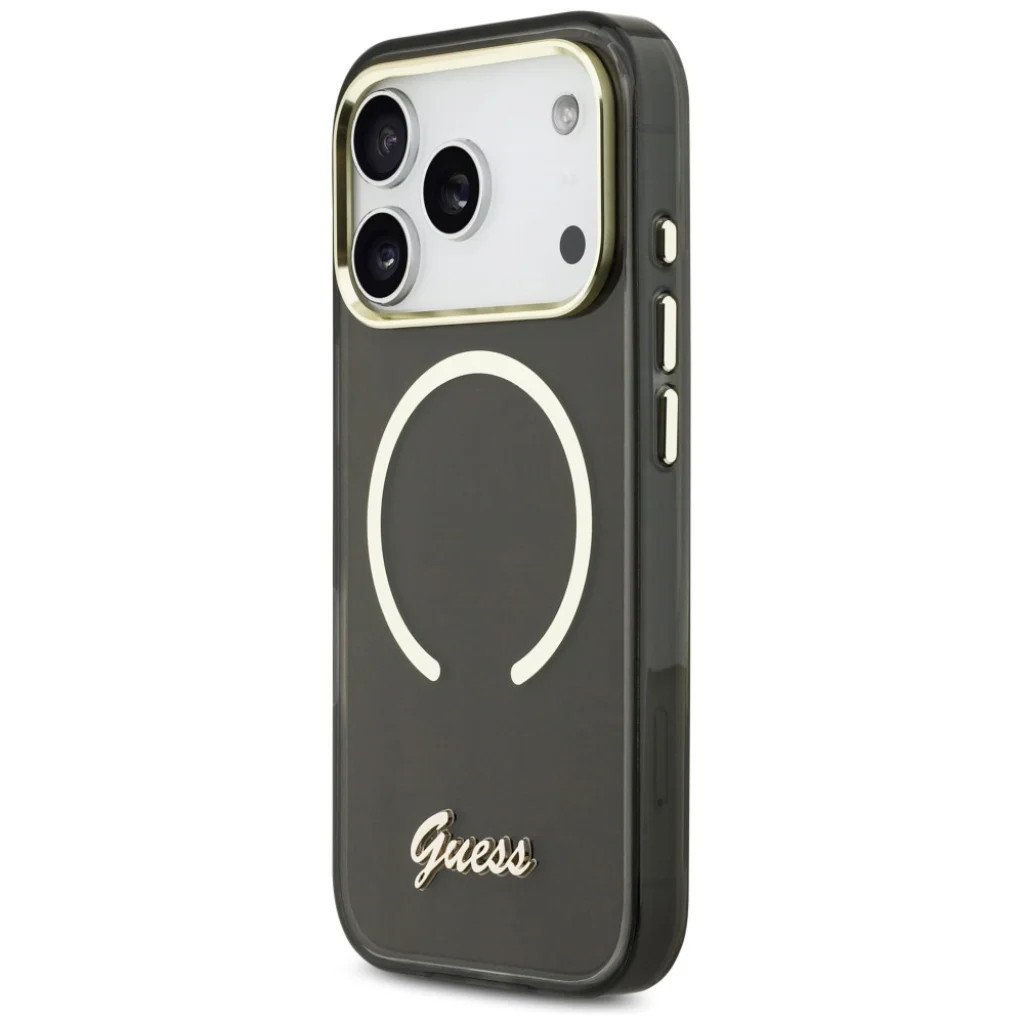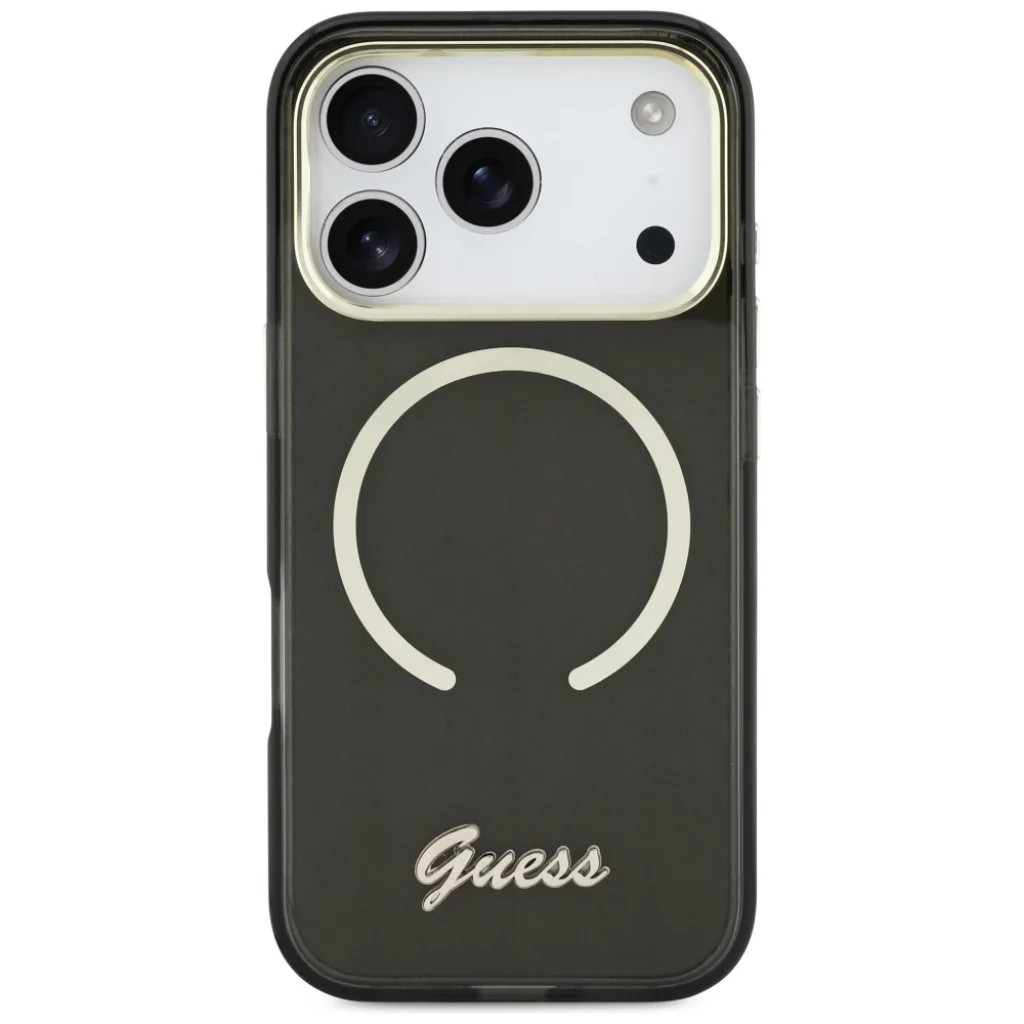 iPhone 17 Pro Max Guess IML Script Metal MagSafe tok fekete