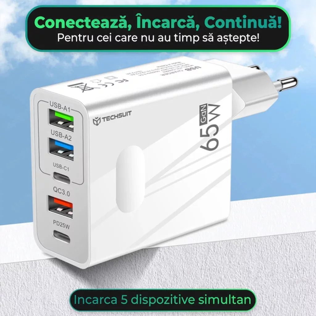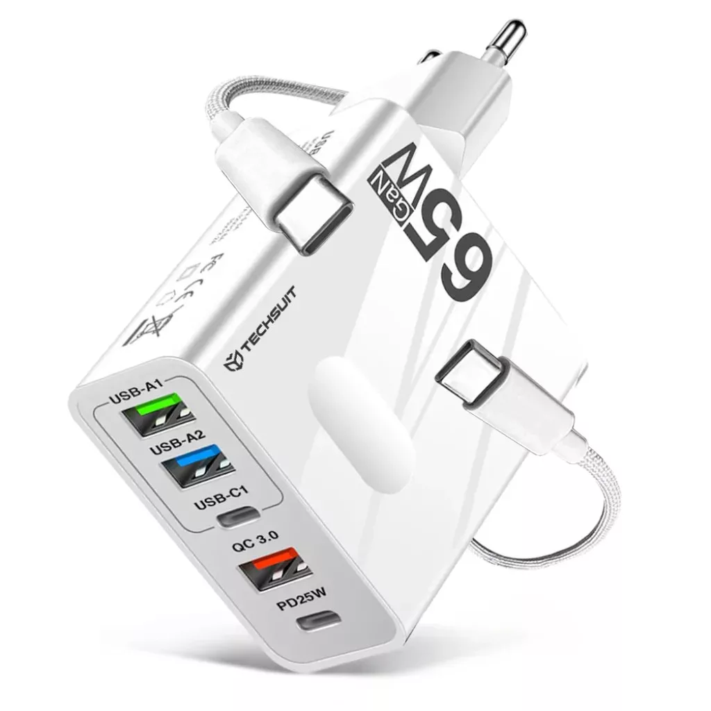 Fedezze fel a Techsuit - Prémium Fali Töltő PentaXPower (CHC1) erejét és sokoldalúságát, amely a legmodernebb technológiával készült, hogy készülékei mindig gyorsan és biztonságosan töltődjenek. Ez a forradalmi töltő 65W teljesítményével és 5 portjával ideális választás otthoni és utazási használatra egyaránt. Főbb jellemzők Extrém teljesítmény: Összesen 65W kimeneti teljesítmény a villámgyors töltésért, akár laptopok és erősebb tabletek számára is. GaN technológia: A Gallium-nitrid (GaN) alapú chipnek köszönhetően a töltő rendkívül kompakt méretű, mégis nagy teljesítményű, alacsonyabb hőtermelés mellett. Öt az egyben megoldás: 3x USB-A (melyből egy QC 3.0) és 2x Type-C (melyből egy PD 25W) porttal rendelkezik, lehetővé téve akár 5 eszköz egyidejű töltését. Intelligens töltés: A beépített okos elosztó rendszer automatikusan felismeri a csatlakoztatott eszköz igényeit, és optimalizálja a töltési sebességet a maximális hatékonyság érdekében. LED visszajelzés: Minden egyes portnál külön LED jelzi a töltési állapotot (pl. zöld, kék, piros), így mindig tisztában lehet a folyamattal. Tartozék Type-C kábel: A dobozban található 1 méteres Type-C kábel azonnal használhatóvá teszi a töltőt. Elegáns design: A letisztult fehér szín és a kompakt forma bármilyen környezetbe illeszkedik. Gyorsaság és hatékonyság Nincs több várakozás! A Techsuit PentaXPower töltővel készülékei sosem merülnek le hosszú időre. A 65W-os kimenetnek köszönhetően egy Huawei telefon teljes feltöltése mindössze körülbelül 1 órát vesz igénybe. Csatlakoztassa, töltse, és folytassa! Ez a töltő azoknak készült, akiknek nincs idejük várni. Okos és biztonságos töltés A PentaXPower nem csak gyors, hanem rendkívül biztonságos is. A beépített multifunkcionális védelmi rendszer gondoskodik a stabil áramkimenetről, megóvva eszközeit a sérülésektől. Ez a töltő ellenáll az eséseknek és lángálló PC anyagból készült, biztosítva a hosszú távú tartósságot és a biztonságos használatot. A beépített védelmi funkciók a következőket foglalják magukban: Túláram védelem Túlfeszültség védelem Alacsony feszültség védelem Túlmelegedés elleni védelem Rövidzárlat védelem Túlterhelés védelem Kompakt design és kényelem Kompakt méretének köszönhetően a Techsuit PentaXPower töltő ideális útitárs. Könnyedén elfér táskájában, és bárhol azonnal használatba veheti. Az öt portos kialakítás kiküszöböli a több töltő és adapter cipelésének szükségességét, így helyet és időt takaríthat meg. Széleskörű kompatibilitás Ez a töltő számos eszközzel kompatibilis, beleértve okostelefonokat, tableteket, laptopokat és egyéb USB-n keresztül tölthető kütyüket. A különböző portoknak (QC 3.0, PD 25W, és általános USB-A) köszönhetően a töltő intelligensen alkalmazkodik a különféle modellek és márkák igényeihez, biztosítva az optimális töltést minden alkalommal.