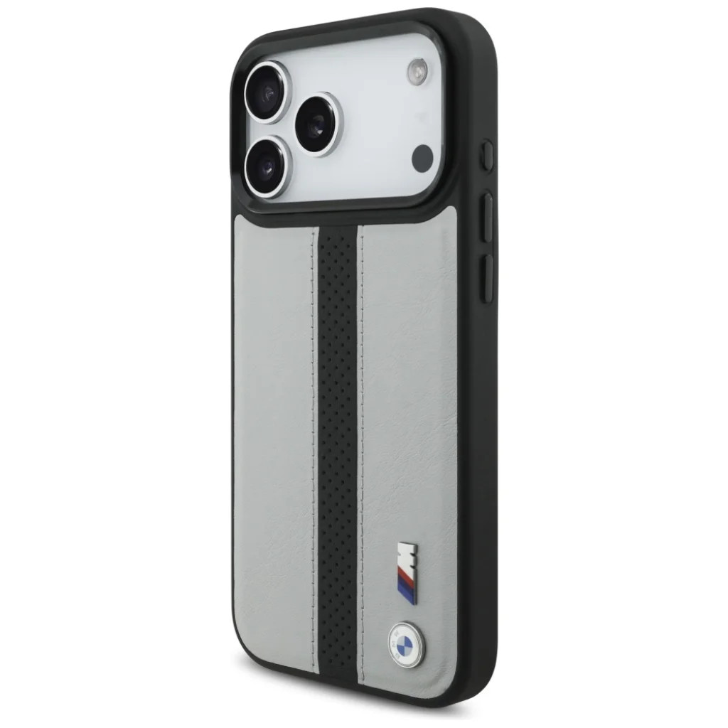 Az exkluzív BMW M Perforated Stripe Logo MagSafe kollekció prémium minőségű tokja, melyet az egyik legnépszerűbb autómárka jegyez. Ez a tökéletes választás minden MagSafe technológiával rendelkező készüléktulajdonos számára. Egyedi dizájn és kivételes minőség: Az elismert BMW márkától származó exkluzív védőtok az eleganciát és az egyedi stílust ötvözi. A tok magas minőségű öko-bőrből készült, amely függőleges perforált csíkkal rendelkezik, biztosítva a tartósságot és az autóipar ihlette jellegzetes megjelenést. A hátoldalt fém BMW és M logók díszítik, amelyek kihangsúlyozzák a kollekció valódiságát. A dizájnt kiegészíti a fekete kamera keret és gombok, amelyek növelik a tartósságot és elegáns jelleget adnak a toknak. Ez a funkcionalitás és a divatos dizájn tökéletes kombinációja, amellyel telefonja nemcsak védelmet kap, hanem egyben stílusos kiegészítő is lesz. Masszív felépítés és tökéletes illeszkedés: A tok rugalmas szélekkel készült, amelyek lehetővé teszik a gyors felhelyezést és levételt. A vékony kialakítás nem növeli jelentősen a telefon méretét, miközben esésvédelmet biztosít. A képernyő és a kamera körüli enyhén megemelt élek extra karcállóságot nyújtanak. A tok tartalmazza az összes pontos kivágást és gombborítást, biztosítva a telefon teljes kényelmét. Töltse telefonját vezeték nélkül! A tok mágneses gyűrűvel van felszerelve, amely kompatibilis a MagSafe vezeték nélküli töltővel, biztosítva a gyors és egyszerű töltést. A beépített mágnesek tökéletesen igazodnak a felhasználó telefonjához, erős tartást biztosítva az iPhone számára a MagSafe töltőhöz. A tok BMW márkájú licenc alapján készült. Technikai adatok: Kollekció: M Perforated Stripe Logo MagSafe Termék típusa: Védőtok Anyag: Öko-bőr / PC / TPU Szín: Szürke Kompatibilitás: iPhone 17 Pro Max