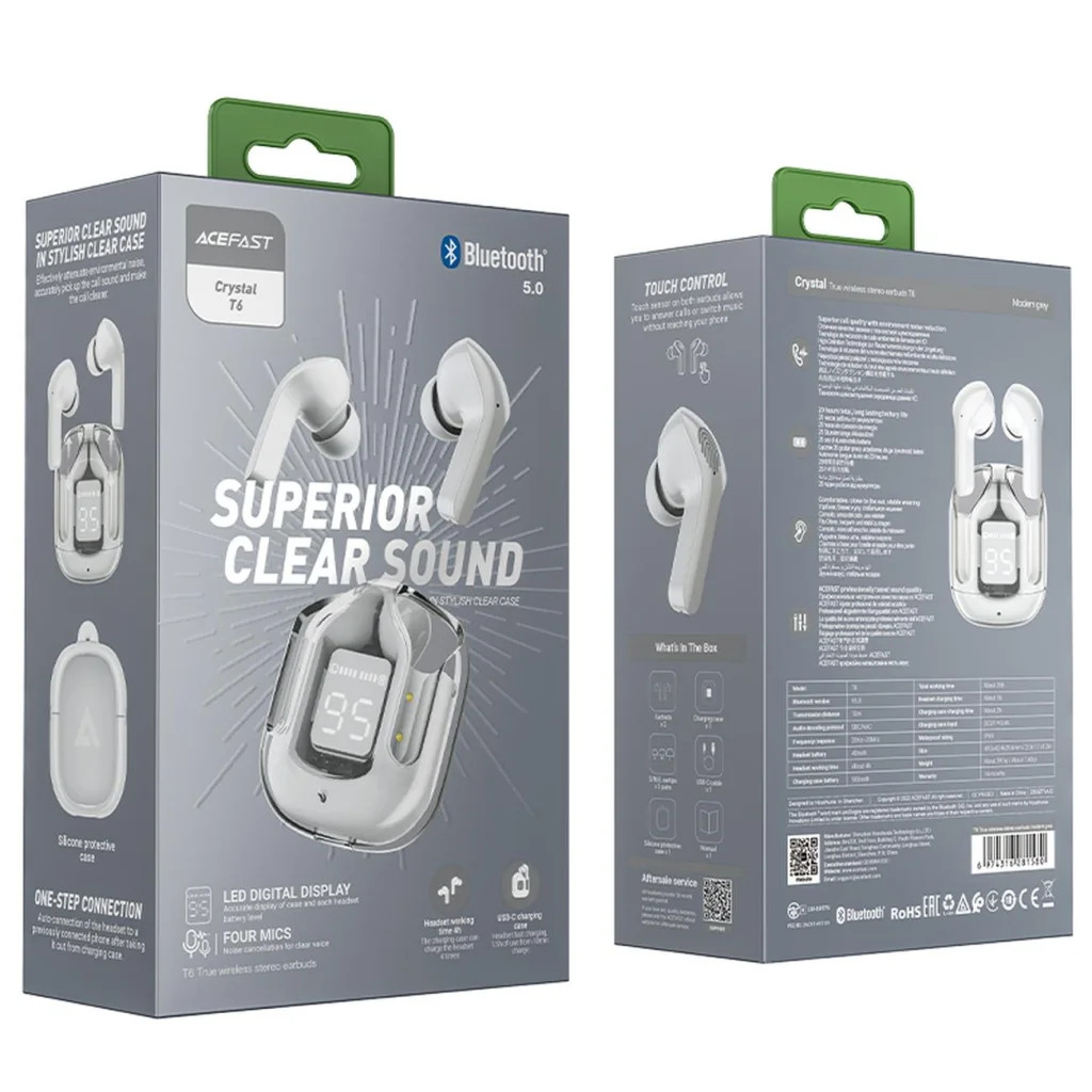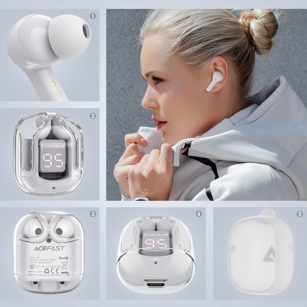 Lenyűgöző hangzás és stílusos design Merülj el a zene világában az Acefast T6 Bluetooth vezeték nélküli fülhallgatóval! A kiváló hangminőség éles magas és tiszta mély hangokkal garantálja, hogy minden hangot tisztán hallj. A fülhallgató egyedi, átlátszó töltőtokja nemcsak stílusos megjelenést kölcsönöz, hanem rajta keresztül a LED digitális kijelző elegánsan mutatja az akkumulátor töltöttségi szintjét mindkét fülhallgató és a tok számára. Kristálytiszta hívások, bárhol, bármikor Az Acefast T6-tal nemcsak zenét hallgathatsz kiváló minőségben, hanem telefonhívásaid is kristálytiszták lesznek. Az innovatív négy mikrofonos rendszer (Environmental Noise Cancellation - ENC zajcsökkentéssel) hatékonyan szűri a környezeti zajokat, miközben felerősíti a hangodat. Ez a technológia biztosítja, hogy a beszélgetések zajos környezetben, például forgalmas utcán vagy szeles időben is zavartalanul zajlanak, így élvezheted az HD hívásminőséget. Intuitív vezérlés és gondtalan használat Érintésvezérlés: A fülhallgatók könnyedén és intuitívan kezelhetők az érintésvezérlés segítségével. Pillanatok alatt válthatsz zeneszámot, fogadhatsz vagy elutasíthatsz hívásokat anélkül, hogy elővennéd a telefonodat. Egylépéses csatlakoztatás: Az első párosítás után a fülhallgatók automatikusan csatlakoznak a készülékedhez, amint kiveszed őket a töltőtokból, így azonnal készen állnak a zenehallgatásra vagy a hívások fogadására. Kényelmes és stabil illeszkedés: A könnyű és ergonomikus kialakítás biztosítja a hosszan tartó kényelmet. A mellékelt több méretű szilikon fülbetétekkel személyre szabott illeszkedést találhatsz, ami stabilan tartja a fülhallgatókat a fülben, akár edzés közben is. Robusztus és megbízható társ a mindennapokban IPX4 vízállóság: Az Acefast T6 fülhallgatók IPX4 minősítésű vízállósággal rendelkeznek, ami ellenáll az izzadságnak és az enyhe esőnek. Ideális társ sportoláshoz, szabadtéri tevékenységekhez vagy mindennapi használathoz, bármilyen időjárásban. Hosszú üzemidő: Élvezd a zenét vagy a beszélgetéseket 3-4 órán keresztül egyetlen töltéssel. A 500mAh kapacitású töltőtok többször is feltölti a fülhallgatókat útközben, jelentősen meghosszabbítva a teljes üzemidőt. A töltőtok mindössze 1 óra alatt teljesen feltölthető a mellékelt USB Type-C kábel segítségével. Tartozék szilikon védőtok: A töltőtokhoz egy praktikus és stílusos szilikon védőtok is jár, amely extra védelmet nyújt a karcolások és a mindennapi kopás ellen, megőrizve a tok eredeti szépségét. Fejlett technológia a maximális élményért Besttechnic BES2300IU chip: A fejlett Besttechnic BES2300IU chip biztosítja a stabil és gyors vezeték nélküli kapcsolatot, a kiváló hangfeldolgozást és az alacsony energiafogyasztást. Bluetooth 5.0: A legújabb Bluetooth 5.0 technológia stabil, energiatakarékos és gyors kapcsolatot biztosít, minimalizálva a késleltetést. SBC / AAC kodek támogatás: Élvezd a kiváló minőségű audio streaminget, amely optimalizálva van a különböző eszközökkel való kompatibilitásra és a hangminőség megőrzésére. Frekvenciaválasz: 20 - 20 000 Hz: A széles frekvenciaválasz a gazdag és teljes hangspektrumot biztosítja, a mély basszustól a kristálytiszta magas hangokig. Könnyű kialakítás: Az egész szett mindössze 39,5 gramm súlyú, így szinte észrevétlenül hordozhatod magaddal a nap folyamán. Műszaki adatok Chip: Besttechnic BES2300IU Bluetooth verzió: 5.0 Kodek támogatás: SBC / AAC Frekvenciaválasz: 20 - 20 000 Hz Akkumulátor kapacitás (fülhallgató): 40mAh Akkumulátor kapacitás (töltőtok): 500mAh Zene / beszélgetési idő: 3-4 óra Töltési idő: 1 óra Vízállósági osztály: IPX4 Súly: 39,5 g (teljes szett) Zajcsökkentés: ENC (Environmental Noise Cancellation) Tartozékok: Acefast T6 fülhallgatók, töltőtok, USB Type-C töltőkábel, több méretű szilikon fülbetét, szilikon védőtok a töltőtokhoz, használati útmutató