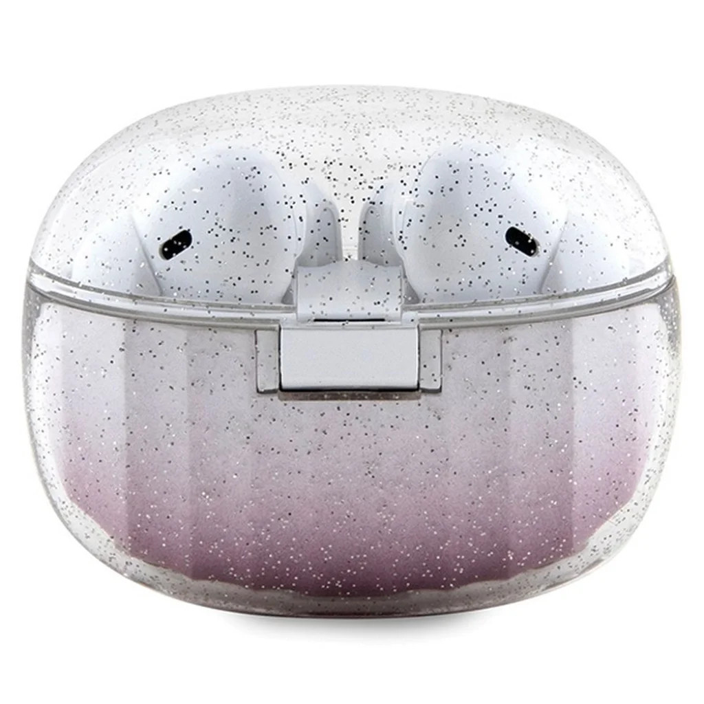 Guess Glitter Gradient Bluetooth TWS fülhallgató + dokkolóállomás Tapasztalja meg a kiváló hangminőség és a stílusos design új definícióját ezekkel a bájos Guess fülhallgatókkal. Lenyűgöző megjelenésük vizuálisan is elvarázsol, és a legújabb technológiák által új dimenzióba léphet a zenehallgatás terén. Gyönyörű megjelenés és kiváló kidolgozás Hihetetlenül stílusos Guess fülhallgatók ötvözik a divatvilágból vett eleganciát a hangtechnika legújabb eredményeivel. Az elegáns fülhallgató tok gradient mintával rendelkezik, amely karaktert és mélységet ad neki. Az intenzív rózsaszíntől kezdve finoman változik a világos rózsaszín árnyalatokba, ami egyedi bájt kölcsönöz az egésznek. További díszítésként a Guess arany logója is megtalálható rajta, amely a termék legmagasabb minőségét és hitelességét igazolja. A tartós műanyag és az arany részletek kombinációjával ezek a fülhallgatók első pillantásra elbűvölőek. Hosszú üzemidő A fülhallgatók hosszú üzemidőt biztosítanak - egyetlen akkumulátortöltéssel négyórás zenei szekciót élvezhet - ezt mindenki értékelni fogja, aki szeret hosszú edzések alatt vagy utazás közben zenét hallgatni. Ha a fülhallgatók lemerülnek, ne aggódjon a zene leállása miatt - csak használja a tokot, amely egyben power bank is. A dokkolóállomás nagy akkumulátorral rendelkezik - 250 mAh - amely lehetővé teszi a fülhallgatók négyszeri teljes feltöltését, így egész nap használhatja őket. Fülhallgatók, amelyek szinte minden időjárási körülmények között tökéletesek Ezek a fülhallgatók nemcsak hang- és vizuális mesterművek, hanem tökéletesen felkészültek egy aktív életmódra is. A készülék IPX4 vízállósági osztályú, ami azt jelenti, hogy ellenáll az izzadságnak és az enyhe esőnek, így nyugodt lehet szabadtéri edzések vagy utazás közben. Bluetooth 5.3 technológia A legújabb Bluetooth 5.3 verzió gyors válaszidőt és hihetetlenül sima kapcsolatot ígér a telefonnal. A fülhallgatók most tökéletesen szinkronizálódnak a okostelefonoddal, lehetővé téve a zene azonnali lejátszását és hívások fogadását késedelem nélkül. Továbbá meg kell jegyezni, hogy a fülhallgatók akár 10 méteres távolságban is csatlakoznak a készülékhez, ami lehetővé teszi, hogy megszabadulj a telefontól - már nem kell mindig magadnál tartanod. Termék Guess licenc alapján gyártva. Műszaki adatok Típus: fülbe helyezhető fülhallgatók Bluetooth verzió: 5.3 Fülhallgató akkumulátora: 2x 30 mAh Töltőtok kapacitása: 250 mAh Fülhallgató töltési ideje: 1 óra Készenléti idő: akár 180 óra Tok töltőportja: USB-C Üzemidő: akár 4 óra IPX védelmi fokozat: IPX4 Membrán mérete: 13 mm Impedancia: 32 ohm Szín: Rózsaszín
