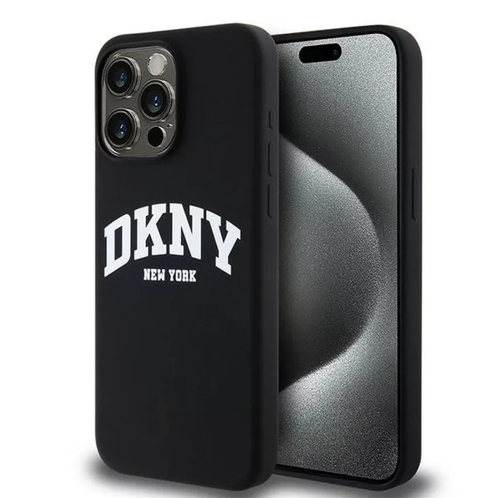 Eredeti DKNY keménytok folyékony szilikon fehér nyomtatott logóval MagSafe DKHMP14XSNYACH az iPhone 14 Pro Max-hoz fekete tok