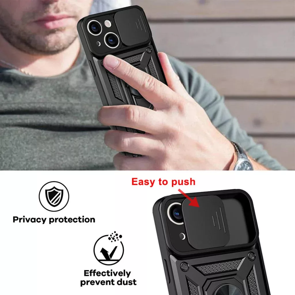 iPhone 14 Pro Max Armor tok csúsztatható kamera lencse védővel fekete Védje iPhone 14 Pro Max készülékét a maximális biztonsággal és stílussal a fekete Armor tokkal, beépített csúsztatható kamera lencse védővel! Ez a prémium minőségű tok nem csupán elegáns megjelenést kölcsönöz telefonjának, hanem átfogó védelmet is nyújt a mindennapi igénybevétel ellen. A rugalmas, puha és mégis rendkívül tartós TPU anyagból készült tok tökéletesen illeszkedik a készülék formájához, vékony és könnyű kialakításának köszönhetően alig növeli annak méretét. Hatékonyan véd a karcolások, ütések és enyhébb leejtések ellen, miközben megőrzi a telefon eredeti szépségét és tapintását. Az igazi különlegessége a praktikus, csúsztatható kamera lencse védő. Egy egyszerű mozdulattal elhúzhatja a lencsék elől, amikor fotózni szeretne, majd visszacsúsztathatja, így megóvva a kamerát a karcolásoktól, portól és ujjlenyomatoktól, amikor nincs használatban. Biztos lehet benne, hogy telefonja legérzékenyebb része is teljes biztonságban van, anélkül, hogy a képminőséget befolyásolná. A tok precízen kialakított kivágásokkal rendelkezik az összes porthoz (töltő, hangszórók) és gombhoz, biztosítva a zavartalan hozzáférést és a könnyű használatot. A profilozott funkciógombok optimális tapintási visszajelzést nyújtanak. Modern és letisztult dizájnja kiemeli készülékét a tömegből, anélkül, hogy hivalkodó lenne. Könnyű felhelyezni és eltávolítani, így rugalmasan kezelheti telefonja védelmét és megjelenését. Válassza az iPhone 14 Pro Max Armor tokot fekete színben, és élvezze a teljeskörű védelmet, a kiemelkedő funkcionalitást és az elegáns megjelenést egyetlen, megbízható termékben!