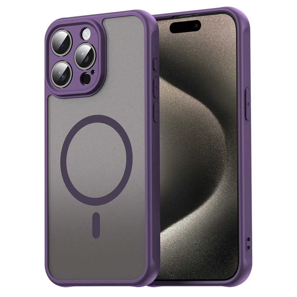 Techsuit halofrost ii magsafe tok iphone 15 pro max készülékhez, lila Emelje ki iPhone 15 Pro Max készülékét a Techsuit HaloFrost II MagSafe tokkal, amely a stílus és a funkcionalitás tökéletes ötvözete. Ez a gondosan megtervezett tok nem csupán esztétikus, hanem átfogó védelmet is biztosít értékes készülékének, miközben a MagSafe technológia minden előnyét élvezheti. Főbb jellemzők: MagSafe kompatibilitás: A tokba integrált MagSafe gyűrű garantálja a vezeték nélküli töltés és a MagSafe kiegészítők (pl. pénztárca, külső akkumulátor) problémamentes csatlakoztatását és stabil rögzítését. Átfogó védelem: 360°-os teljes körű védelem: Készüléke minden oldalról védve van a mindennapi karcolásoktól, ütődésektől és kopástól. Megemelt élek: A kamera és a képernyő körül gondosan megemelt keret megvédi ezeket a sérülékeny részeket a közvetlen felülettel való érintkezéstől, megakadályozva a karcolódást. Ütésálló sarok légpárnák: A sarkokban elhelyezett speciális "légzsákok" hatékonyan elnyelik az ütéseket leejtés esetén, minimalizálva a készülék károsodásának kockázatát. Prémium anyagok és kialakítás: Matt felület: A tok áttetsző, matt hátlapja nem csak elegáns megjelenést kölcsönöz, hanem ellenáll az ujjlenyomatoknak, és kellemes, selymes tapintást biztosít. Olaj- és víztaszító: A speciális felületkezelésnek köszönhetően a tok taszítja a vizet és az olajat, így könnyen tisztán tartható és hosszan megőrzi újszerű megjelenését. Rugalmas kialakítás: A rugalmas anyag garantálja a tok könnyű felhelyezését és eltávolítását, miközben pontosan illeszkedik a készülékre, anélkül, hogy vastagságot adna hozzá. Precíziós gombok: A rugalmas nyomógombok pontos visszajelzést adnak, és biztosítják a hangerőszabályzók és a bekapcsológomb zavartalan használatát. Stílusos design: A modern lila keret és kamera modul kiemelés stílusos megjelenést kölcsönöz iPhone 15 Pro Max készülékének, miközben az áttetsző, matt hátlap engedi érvényesülni a telefon eredeti szépségét. Válassza a Techsuit HaloFrost II MagSafe tokot, hogy iPhone 15 Pro Max készüléke ne csak maximális védelmet kapjon, hanem a legmodernebb MagSafe funkciókat is gondtalanul élvezhesse, mindezt egy ízléses és funkcionális csomagban, amely kiemeli telefonja egyediségét.