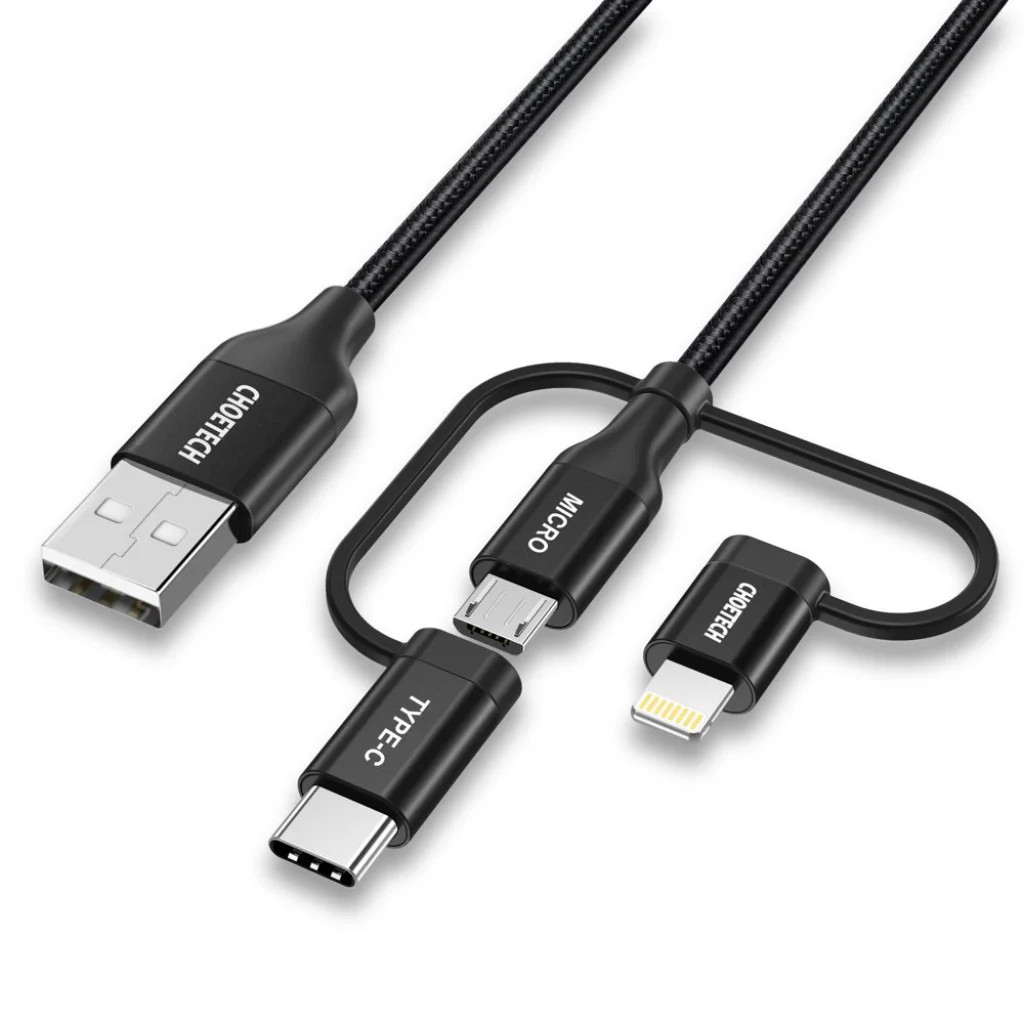 Choetech 3in1 MFI kábel USB - USB Type C / micro USB / Lightning (3A / 480 Mbps) 1.2m fekete (IP0030-BK)