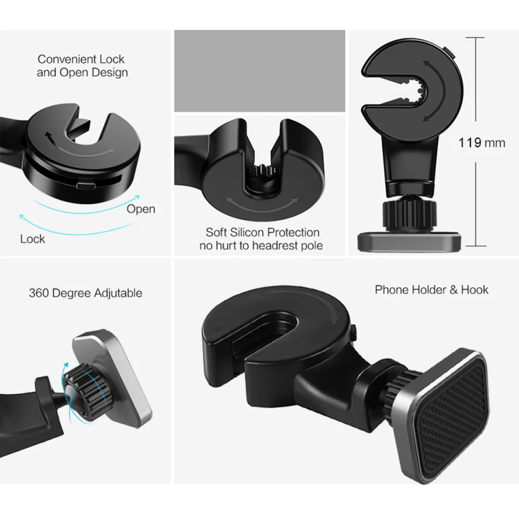 Mágneses telefontartó fejtámlára rögzíthető Type 2 fekete/piros