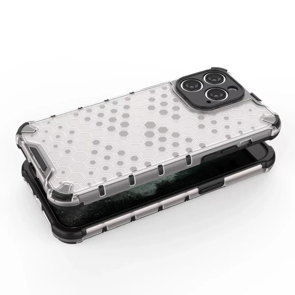 Páncélozott iPhone 14 Pro Max tok a Honeycomb sorozatból kék színben A Honeycomb sorozat tokja egy speciális, hőre lágyuló és tartós anyagból készült, amely méhsejt alakzatban van elrendezve. A tok az iPhone 14 Pro Max készülékhez van igazítva, és kiválóan védi a telefont az esés vagy karcolás okozta sérülésektől (például a zsebében hordott kulcsok által). A kijelző és a hátsó kamera körüli megemelt élek megóvják a telefont a karcolásoktól, amikor sík felületre helyezzük. A tok rendelkezik érzékeny gombokkal és kivágásokkal a portokhoz. Tökéletes választás azok számára, akik értékelik a stílust, a minőséget és gondoskodni szeretnének készülékükről. Specifikáció: - Sorozat: Carbon Case - Anyag: TPU, PU - Kompatibilitás: iPhone 14 Pro Max - Készülék modellkódjai: - A2651 - A2893 - A2896 - A2895 - A2894 - Szín: kék A Honeycomb tok kiemelt jellemzői iPhone 14 Pro Max készülékhez: - Hibrid tok merev hátlappal és rugalmas kerettel. - Eredeti design - A tok hátlapján egy méhsejthez hasonló minta található. - Tartós és strapabíró - Erős PC anyagból készült, a tok védi a készülék hátoldalát, míg a rugalmas TPU keret a készülék széleit védi. - Megemelt élek - Finoman megemelt élek, amelyek emellett védik a kijelzőt és a kamerát. - Integrált gombok - Megakadályozza, hogy szennyeződés kerüljön a gombok alá. - Precíz kivágások - Garantálják a könnyű hozzáférést minden fontos porthoz.