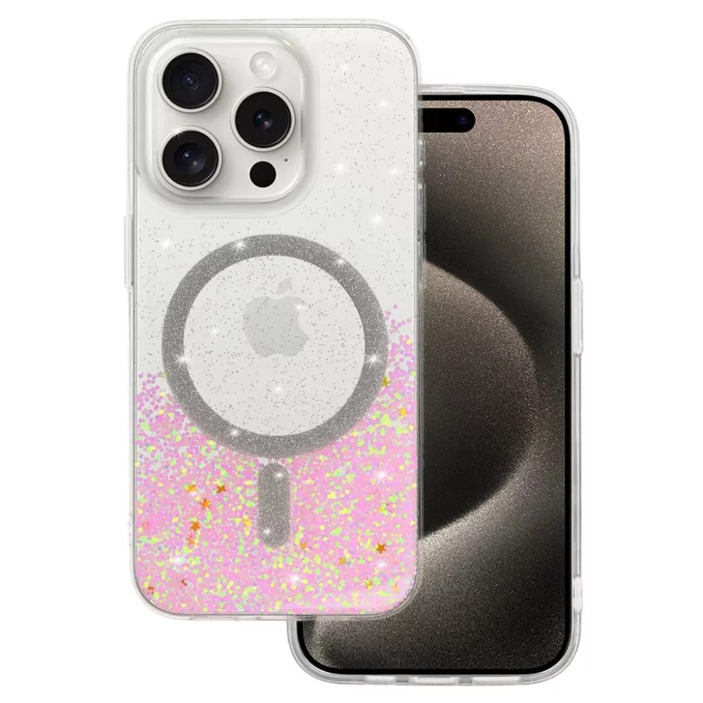 Tel Protect Moonlite Magsafe tok - egy ragyogó tok, amely rugalmas TPU anyagból (oldalak) és kemény akrilból (hátlap) készült. A tok védi az okostelefon hátlapját, oldalait, kameráját és kijelzőjét. A tokba épített mágnesek kompatibilissé teszik az Apple MagSafe kiegészítőkkel. - Hibrid kialakítás (rugalmas TPU oldalak + kemény akril hátlap) - Védelem karcolások és esések ellen - Mágneses gyűrűvel ellátva, amely kompatibilis a MagSafe kiegészítőkkel - Csillogó glitter részecskék egyedi megjelenést kölcsönöznek a toknak - Kiemelkedő élek, amelyek extra védelmet nyújtanak a kijelzőnek és a kamerának - Zsinórtartó - Alapvető kivágások a könnyű hozzáférés érdekében az összes porthoz - Integrált gombok, amelyek megakadályozzák a por és szennyeződés bejutását a tok alá - Csúszásmentes anyag biztosítja, hogy a telefon biztonságosan nyugodjon a kezedben.