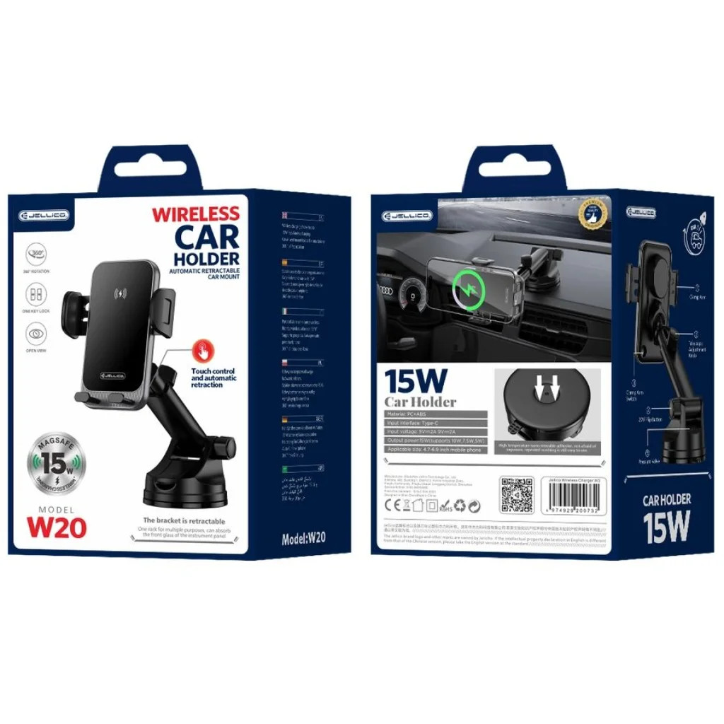 Jellico w20 15w vezeték nélküli autós telefontartó Fedezze fel a Jellico W20 15W autós telefontartó nyújtotta kényelmet és modern technológiát, amely tökéletes társ lesz utazásai során! Ez a forradalmi tartó nem csupán stabilan rögzíti telefonját, de egyben gyors és hatékony vezeték nélküli töltést is biztosít, így sosem kell aggódnia a lemerülő akkumulátor miatt. Főbb tulajdonságok és előnyök: Automatikus érzékelés és rögzítés: Az intelligens érzékelőnek és érintésvezérlésnek köszönhetően a tartó karjai automatikusan nyílnak és záródnak, amint a telefont behelyezi, illetve kiveszi. Ez garantálja a maximális kényelmet és egykezes használatot. Ultra gyors 15W vezeték nélküli töltés: A Jellico W20 támogatja a legújabb gyorstöltési technológiákat, így akár 15W teljesítménnyel is képes tölteni Qi-kompatibilis okostelefonját. Ez magában foglalja az 5W, 7.5W, 10W és 15W töltési módokat. Stabil és sokoldalú rögzítés: Az erős tapadókorongos alap lehetővé teszi a telefontartó biztonságos rögzítését mind a szélvédőn, mind a műszerfalon. A tartókar behúzható, hossza állítható, és 220°-os dönthetőséget biztosít az optimális elhelyezésért. 360°-os forgatás: A telefontartó fej 360 fokban elforgatható, így könnyedén beállíthatja a telefont fekvő vagy álló pozícióba, biztosítva a tökéletes látószöget a navigációhoz vagy hívásokhoz. Prémium anyaghasználat: Tartós és kiváló minőségű PC+ABS anyagokból készült, amelyek hosszú élettartamot és megbízható működést garantálnak még gyakori használat mellett is. Széleskörű kompatibilitás: Támogatja a 4.7 és 6.9 hüvelyk közötti méretű okostelefonokat, így a legtöbb modern készülékkel kompatibilis. Biztonsági tanúsítványok: A termék CE, FCC és RoHS tanúsítványokkal rendelkezik, ami garantálja a biztonságos és megbízható működést. Termékjellemzők: Termék neve: JELLICO autós telefontartó vezeték nélküli töltéssel W20 15W Modell: W20 Szín: Fekete Anyag: PC+ABS Bemeneti feszültség: 5V/2A, 9V/2A, 12V/2A Kimeneti teljesítmény: 5W / 7.5W / 10W / 15W (Max) Kompatibilis telefonméret: 4.7 - 6.9 hüvelyk Rögzítés: Tapadókorong (műszerfalra/szélvédőre) Forgatás: 360° (tartófej), 220° (kar) Csomagolás: Bliszter Márka: Jellico A Jellico W20 autós telefontartóval egyszerűbbé és biztonságosabbá válnak utazásai, miközben telefonja mindig feltöltve és kéznél lesz!