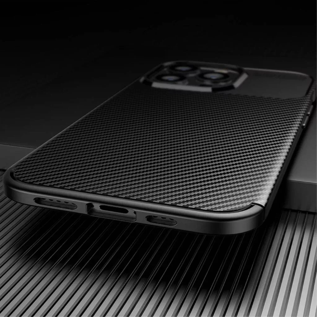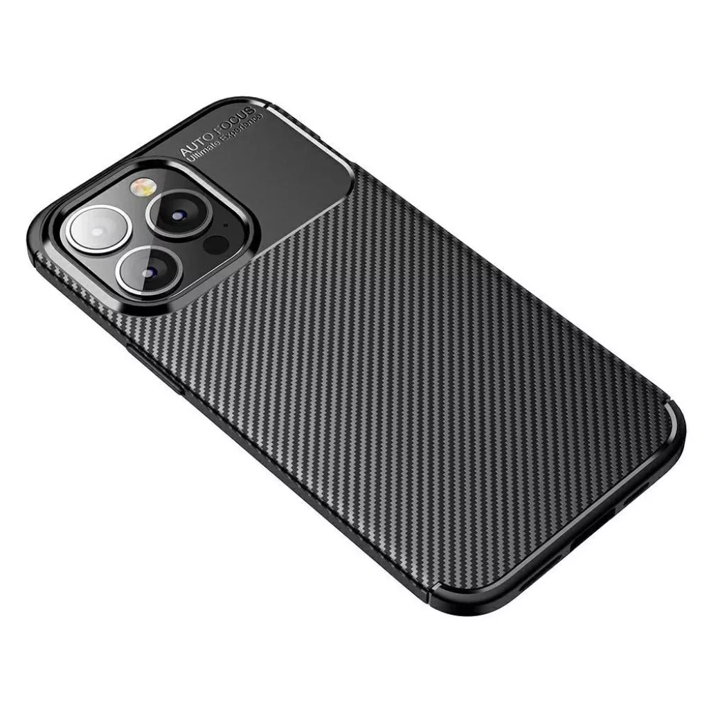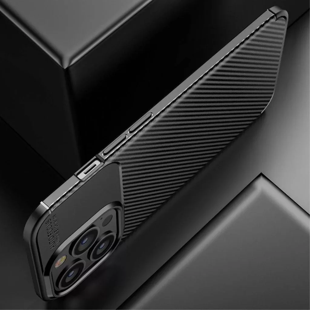 iPhone 13 Pro Max Armored szénszál mintájú TPU tok fekete