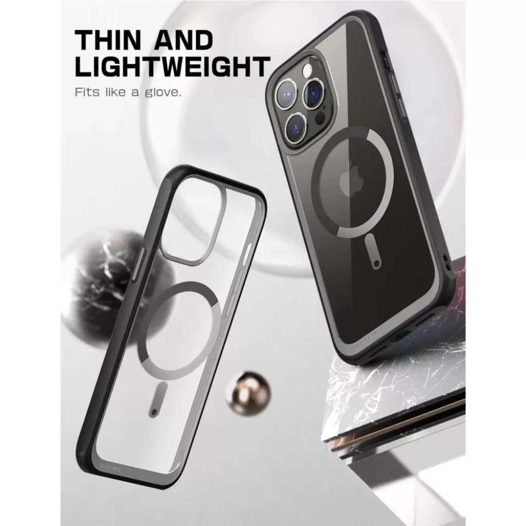 Tökéletesen szabott, hibrid kialakítás biztosítja a magas szintű védelmet. A polikarbonát bevonattal megerősített és edzett átlátszó hátlap tökéletesen megvédi a készüléket a karcolásoktól, és feltárja a készülék eredeti sziluettjét. A puha, hőre lágyuló, matt felületű keret javítja a tapadást, és a megerősített sarkok csillapítják az esést.A tok kissé megemelt formája a kamera és a képernyő körül védi a karcolásoktól azáltal, hogy a telefont közvetlenül a sík felület fölé mozgatja. Gombburkolatok és kivágások vannak a portokhoz. A mágneses gyűrű maximális töltési teljesítményt és gyors és egyszerű csatlakozást biztosít a MagSafe funkcióval rendelkező összes tartozékhoz. A tok a MagSafe vezeték nélküli technológiával kompatibilis gyűrűvel rendelkezik. A Supcase UB Mag egy olyan tok, amelyet alkalmassági teszteknek vetettek alá, 26-szor akár 1,2 m magasságból, így megkapta az amerikai MIL-STD 810G-516.6 katonai bizonyítványt.
