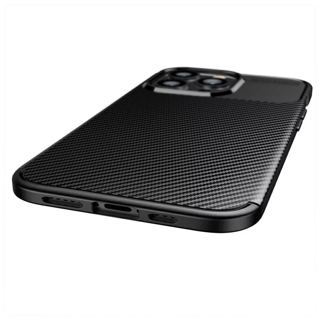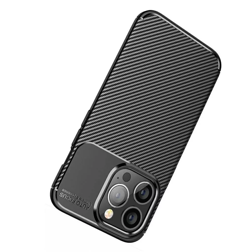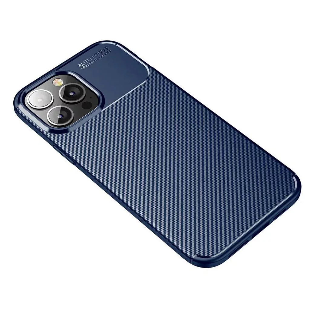 iPhone 13 Pro Max Armored szénszál mintájú TPU tok kék