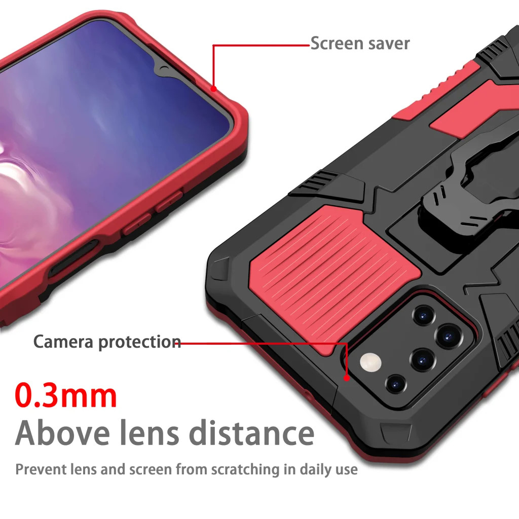 Samsung Galaxy A03s Alphajack fokozott védelmet biztosító tok, piros Védd Samsung Galaxy A03s telefonod a legkeményebb körülmények között is az Alphajack "MechWarrior Project" szériájának piros-fekete, masszív tokjával! Ez a tok nem csupán esztétikus kiegészítő, hanem egy igazi védelmi erődítmény, amely garantálja készüléked biztonságát a mindennapok során és az extrém kihívásokban egyaránt. Extrém ütésállóság és megbízható védelem Kettős rétegű védelem: Prémium minőségű, rugalmas TPU és strapabíró PC (polikarbonát) anyagok kombinációjából készült, amelyek tökéletes szinergiában nyújtanak ütés- és karcállóságot. Az "Anti impact + anti falling" kialakítás maximális biztonságot szavatol. Megerősített sarkok: A tok négy sarka speciálisan megerősített ("Upgrade 4 corners to enhance protection"), hogy elnyelje az ütések erejét és minimalizálja a sérülések kockázatát a leggyakoribb leejtési pontokon. Kiemelt kijelző- és kameravédelem: A tok megemelt peremei 0.3mm-rel a kijelző és a kamera lencséi fölé nyúlnak, így megakadályozzák a közvetlen érintkezést sík felületekkel, óvva azokat a karcolásoktól és a töréstől. Karc- és ujjlenyomatálló: Speciális felületkezelésének köszönhetően ellenáll a karcolásoknak és nem tapadnak meg rajta az ujjlenyomatok, így mindig tiszta és esztétikus marad. Tisztaság belülről: Hatékonyan megakadályozza a por és szennyeződések bejutását a tok és a telefon közé, megóvva ezzel a készülék hátlapját a koszolódástól és karcolódástól. Multifunkcionális kialakítás a maximális kényelemért Integrált kihajtható támasz: A tok hátulján található beépített, stabil támasz ("Support Design") segítségével könnyedén vízszintes vagy függőleges pozícióba állíthatod telefonod, ideális videónézéshez, videóhívásokhoz vagy prezentációkhoz. Kényelmes nyitása és zárása hozzájárul a hatékonyabb munkavégzéshez és szórakozáshoz. Mágneses autós tartó kompatibilitás: A kihajtható támasz egy fém hátlapi klipet is tartalmaz ("Metal back clamp"), amely mágneses autós tartókkal is kompatibilissé teszi a tokot, így gyorsan és biztonságosan rögzítheted telefonod az autóban. Praktikus övcsipesz: A strapabíró klip ("Back bracket") lehetővé teszi, hogy a tokot könnyedén rögzítsd övedre, zsebedre vagy táskádra, így mindig kéznél lehet a telefonod sportolás, munka vagy egyéb tevékenységek során. Különösen ajánlott aktív életmódot élőknek, futóknak, túrázóknak, építőipari dolgozóknak vagy bárkinek, aki fokozott mobilitásra és biztonságra vágyik. Precíz illeszkedés és ergonomikus design Pontos kivágások: A tokot kizárólag a Samsung Galaxy A03s modellhez tervezték, így minden port, gomb és funkció akadálytalanul hozzáférhető marad. Ergonomikus fogás: A tok texturált felülete és ergonómikus kialakítása kiváló és stabil fogást biztosít, minimalizálva a véletlen kicsúszás esélyét. Stílusos és masszív megjelenés: A piros és fekete színkombináció, valamint a "MechWarrior Project" inspirálta robusztus design modern és sportos megjelenést kölcsönöz telefonodnak. Az Alphajack Protection-1 tokkal készüléked nem csupán kiemelkedő védelmet kap, hanem egy sokoldalú és kényelmes társat is a mindennapi kalandokhoz. Válaszd a kompromisszumok nélküli biztonságot és funkcionalitást!