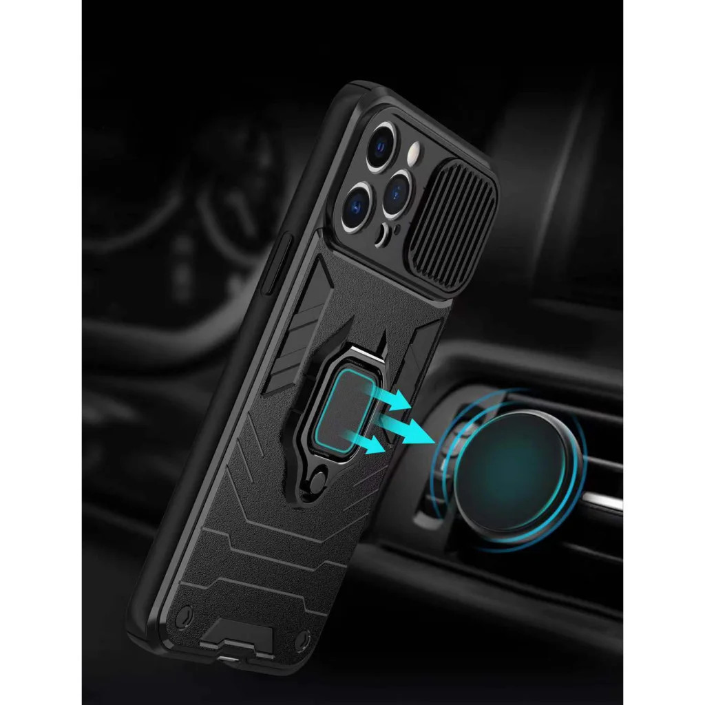Kiemelkedő védelem és multifunkcionális kialakítás Válassza a Samsung Galaxy A03s Ring Lens tokot kameralencse védővel, kihajtható mágneses támasszal fekete Alphajack változatban, ha telefonjának teljes körű védelmet és extra kényelmet szeretne biztosítani. Ez az Alphajack tok egyedülálló hibrid kialakításának köszönhetően nem csak megvédi készülékét a mindennapi sérülésektől, de innovatív funkcióival a felhasználói élményt is fokozza. Fejlett kameralencse védelem Az innovatív, elhúzható kameralencse védő diszkréten és hatékonyan óvja a Samsung Galaxy A03s kameráját a karcolásoktól, portól és ütődésektől. A precízen illeszkedő csúszka könnyedén mozgatható, így csak akkor fedi le a lencséket, amikor nincs rájuk szükség, megőrizve azok tisztaságát és a képminőséget. Integrált gyűrűs tartó és mágneses kompatibilitás A tok hátoldalán található kihajtható gyűrűs tartó stabil és biztonságos fogást biztosít, minimalizálva a véletlen leejtés kockázatát. Használja a gyűrűt kényelmes kihajtható támasszként videók nézéséhez, videóhívásokhoz vagy böngészéshez, akár fekvő, akár álló módban. A gyűrűbe épített fémlemez révén a tok mágneses autós telefontartókkal is kompatibilis, így vezetés közben is stabilan és biztonságosan rögzítheti készülékét. Hibrid anyagok, ütésálló kialakítás Ez a tok hibrid, TPU és PC anyaghasználattal készült, amely kiválóan ötvözi a rugalmasságot és a strapabírást. A belső, puha TPU réteg elnyeli az ütéseket és rázkódásokat, míg a külső, kemény PC réteg ellenáll a karcolásoknak és a durva behatásoknak. Az ütésvédő kialakítás és a megerősített sarkok maximális biztonságot nyújtanak telefonjának a leesések és ütések ellen. A minőségi konstrukció garantálja a hosszú távú védelmet és az esztétikus megjelenést. Praktikus design és kényelmes használat A tok precíz illeszkedést és kivágásokat biztosít, így minden csatlakozó, gomb és szenzor könnyedén hozzáférhető marad. A speciális felületkezelésnek köszönhetően nem marad rajta ujjlenyomat, és hatékonyan véd a tok belső felületi koszolódásától. A texturált felület és az ergonomikus kialakítás jó fogást biztosít, csökkentve a kicsúszás esélyét a kézből.