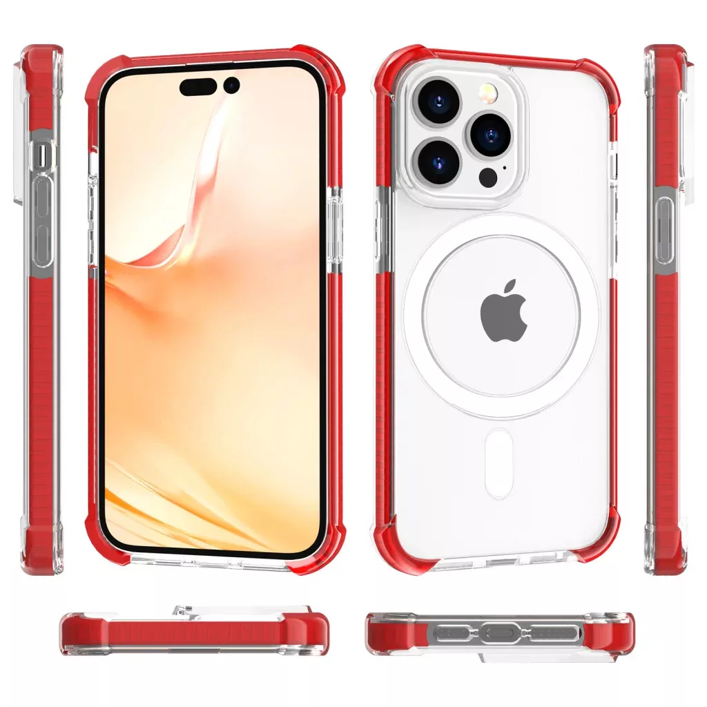 Az alphajack ütésálló magsafe kompatibilis tok iphone 14 pro max készülékhez Védje iPhone 14 Pro Max készülékét stílusosan és megbízhatóan az Alphajack ütésálló, MagSafe kompatibilis átlátszó TPU tokkal! Ez a prémium minőségű tok egyesíti a maximális védelmet az elegáns, minimalista dizájnnal, miközben kiemeli telefonja eredeti szépségét, és élénk piros kerete egyedi megjelenést kölcsönöz. Kiemelkedő védelem minden körülmények között Hibrid anyaghasználat: TPU (termoplasztikus poliuretán) és PC (polikarbonát) anyagok kombinációjából készült, ami kiváló ütéselnyelést és karcolásállóságot biztosít. Átfogó védelem: Hatékonyan óvja készülékét a mindennapi karcolásoktól, ütésektől és kisebb leejtésektől. Megerősített sarkok és emelt élek: A tok sarkai extra védelemmel vannak ellátva, hogy a legkritikusabb pontokon is ellenálljon a behatásoknak. Az emelt perem a kijelző és a kamera körül további védelmet nyújt, megakadályozva a közvetlen érintkezést sík felületekkel. Elegancia és funkcionalitás kéz a kézben Átlátszó hátlap és élénk piros keret: Az átlátszó hátlap tökéletesen láttatja az iPhone 14 Pro Max eredeti színét és ikonikus logóját, míg a dinamikus piros keret egyedi és stílusos megjelenést kölcsönöz. MagSafe kompatibilitás: Beépített mágnesgyűrűjének köszönhetően zökkenőmentesen használhatja MagSafe tartozékaival, legyen szó vezeték nélküli töltésről vagy kiegészítők rögzítéséről. Hosszú távú átlátszóság: Kiváló minőségű anyagainak köszönhetően ellenáll a zsíros szennyeződéseknek, az elsárgulásnak és a zavaró szivárványosodásnak, így hosszú ideig megőrzi kristálytiszta átlátszóságát. Gondosan megtervezett részletek Precíz illeszkedés és kivágások: Tökéletesen illeszkedik az iPhone 14 Pro Max vonalaihoz. Minden kivágás pontosan a portokhoz, hangszórókhoz, mikrofonhoz és a némító kapcsolóhoz igazodik, biztosítva a zavartalan hozzáférést. Védett, mégis érzékeny gombok: A hangerő-szabályzó és bekapcsológombok is fedettek, mégis könnyedén nyomhatók maradnak, megóvva őket a portól és a karcolásoktól. Csúszásmentes kialakítás és texturált oldalak: A tok kényelmesen fekszik a kézben, csúszásmentes felületének és az oldalakon található finom textúrának köszönhetően stabil fogást biztosít, minimalizálva a véletlen leejtés kockázatát. Az Alphajack ütésálló MagSafe tokkal iPhone 14 Pro Max készüléke nem csak kiválóan védett lesz, hanem kiemelkedő stílusban és teljes funkcionalitással ragyoghat minden nap.