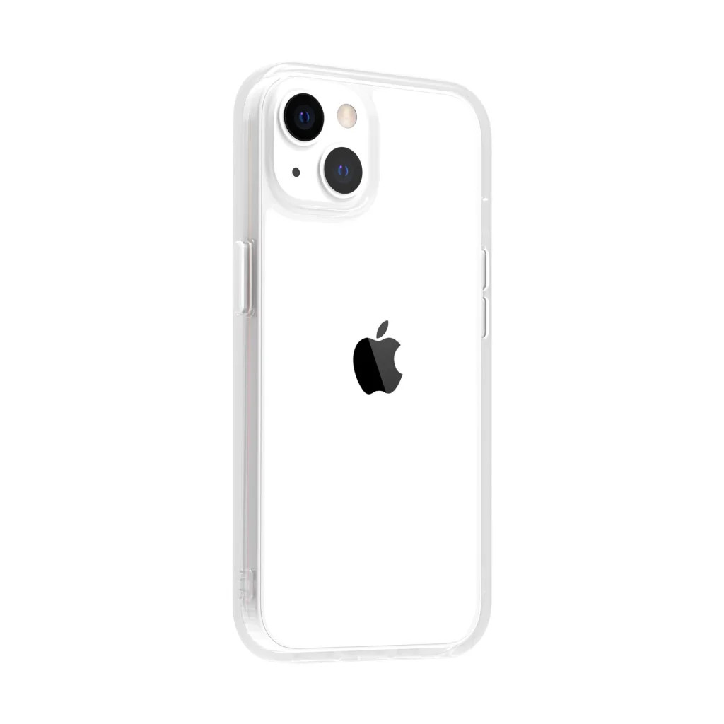 iPhone 14 Plus átlátszó TPU tok edzett üveg hátlappal, fehér kerettel Alphajack
