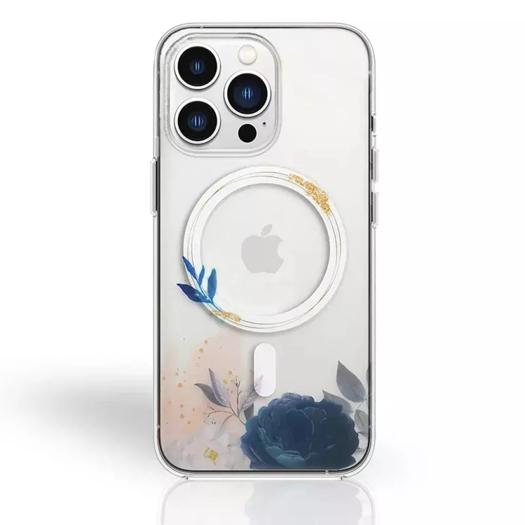 TPU+PC+Akril anyaghasználattal készült tok, amely védelmet nyújt a mindennapi használat során.A tok MagSafe-kompatibilis, így tokban is tölthető vezeték nélkül. A mágnesgyűrű biztosítja a maximális töltési hatékonyságot, valamint a MagSafe funkcióval rendelkező tartozékok gyors és egyszerű csatlakoztatását.Virág mintázattal ellátva