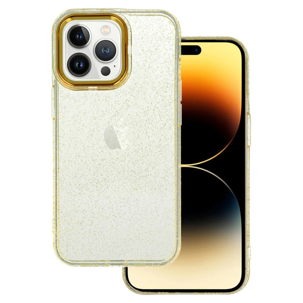 Tel Protect Gold Glitter Case - rugalmas TPU anyagból készült luxus tok sorozat. A tok védi a hátlapot, az oldalakat, a fényképezőgépet és az okostelefon képernyőjét. Védelem a karcolások és leejtés ellen. A fényes csillogó részecskék egyedi megjelenést kölcsönöznek a toknak. A kamerasziget körül kiálló arany keret minimalizálja a sérülés kockázatát. A kiálló élek további képernyővédelmet nyújtanak. A szükséges kivágások garantálják az összes porthoz való könnyű hozzáférést. A beépített gombok megakadályozzák, hogy por és szennyeződés kerüljön a ház alá. A csúszásmentes anyagnak köszönhetően a telefon biztonságosan illeszkedik a kézbe. Töltse fel telefonját anélkül, hogy kivenné a tokból.