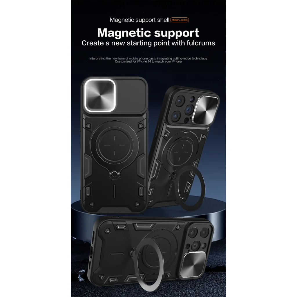 iPhone 15 Pro Max Ring Armor tok kameralencse védővel, kihajtható támasszal, piros Alphajack