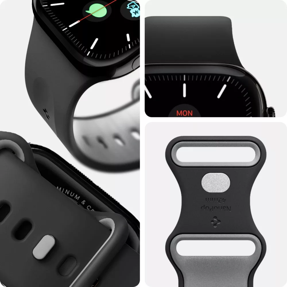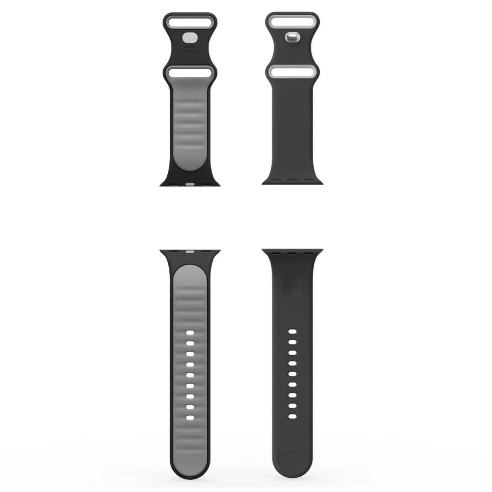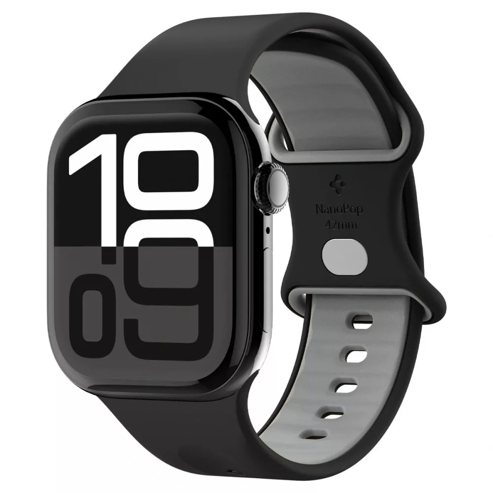 Apple Watch 4-6, SE, SE (2022), SE (2025) (38 / 40 mm) / Watch 7-9 (41 mm) / Watch 10-11 (42 mm), szilikon pótszíj, állítható, Spigen Nano Pop, fekete/szürke
