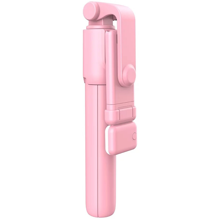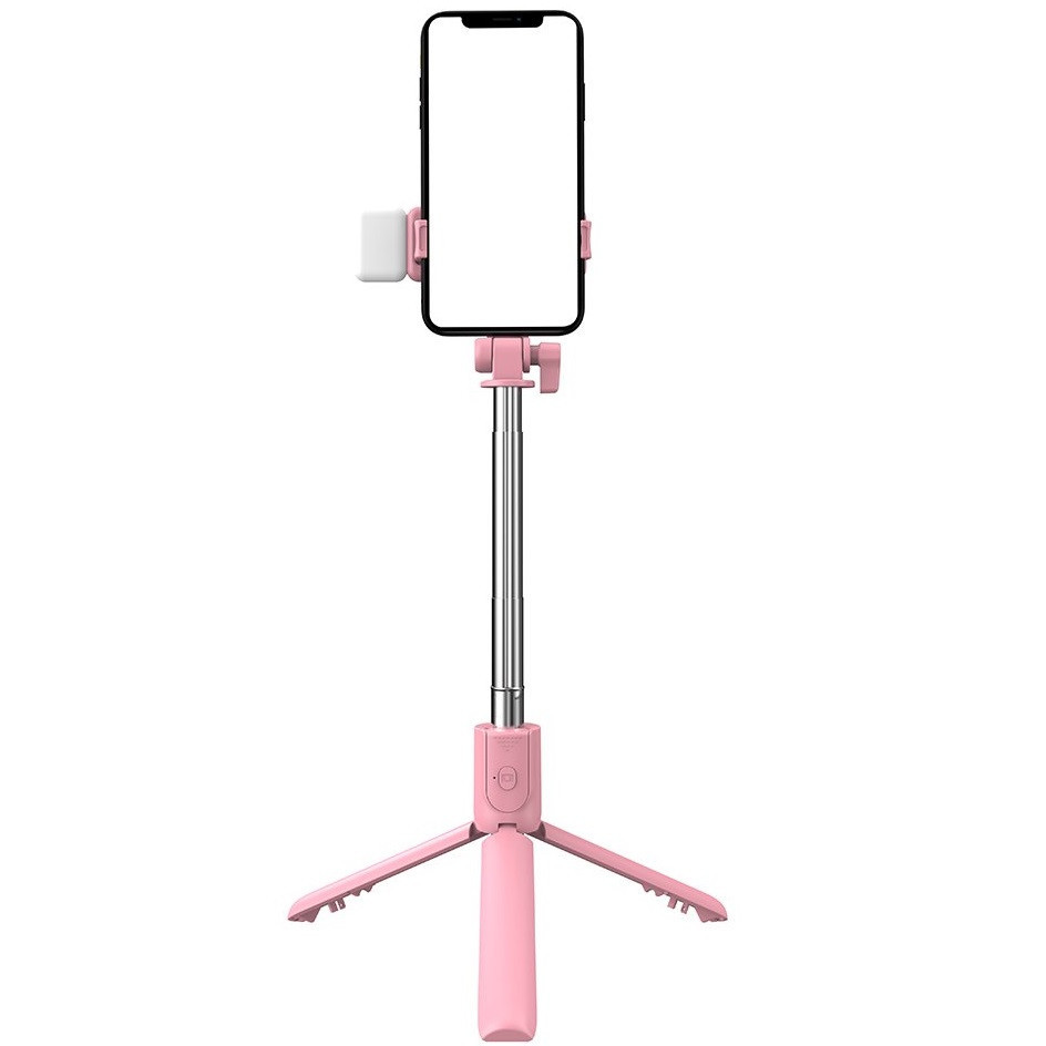 Prémium selfie bot, 19 - 70 cm, 360°-ban forgatható, exponáló gombbal, bluetooth-os, v4.0, tripod állvány funkció, világítással, R1S, rózsaszín