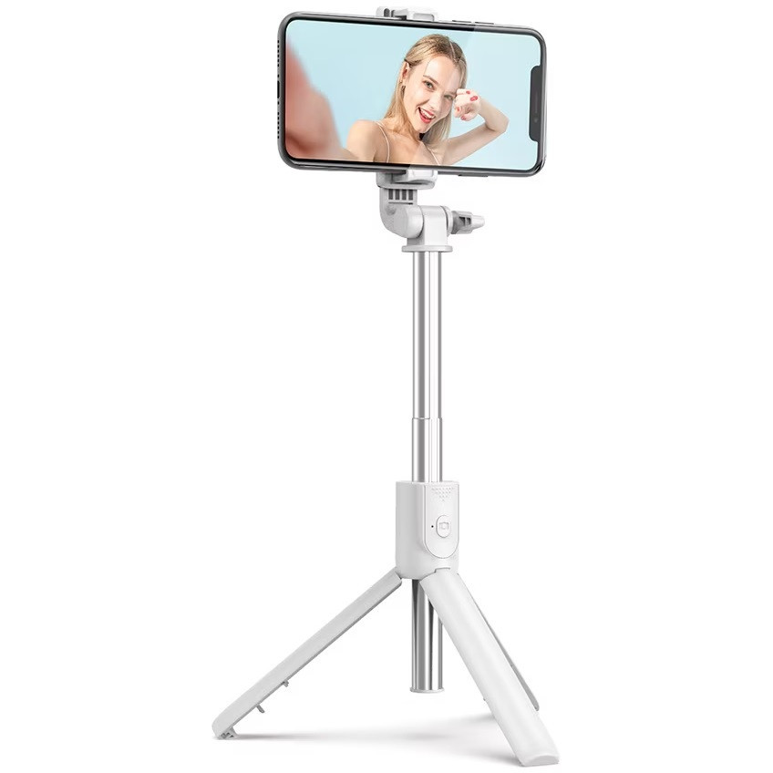 Prémium selfie bot, 19 - 70 cm, 360°-ban forgatható, exponáló gombbal, bluetooth-os, v4.0, tripod állvány funkció, R1, fehér